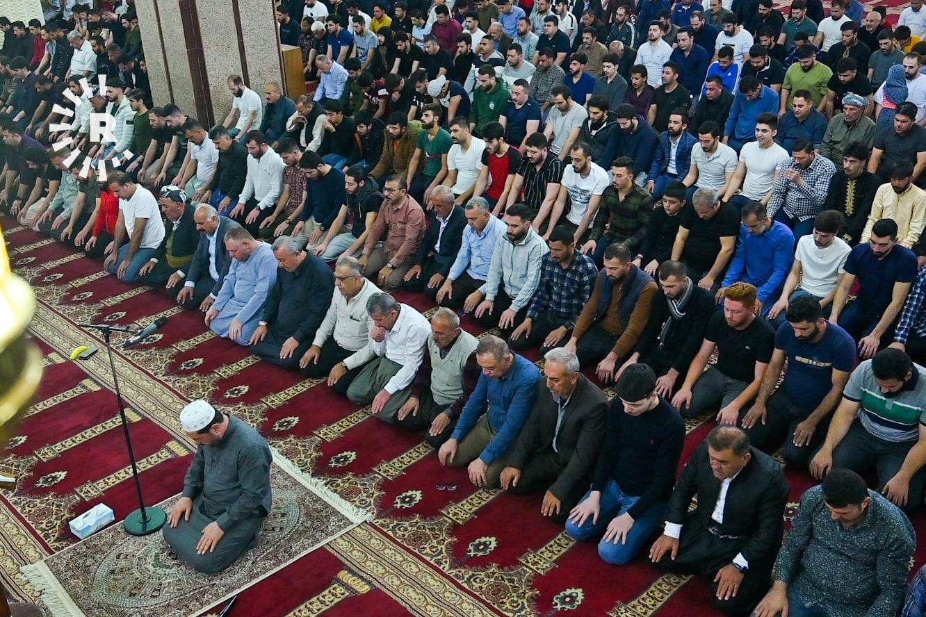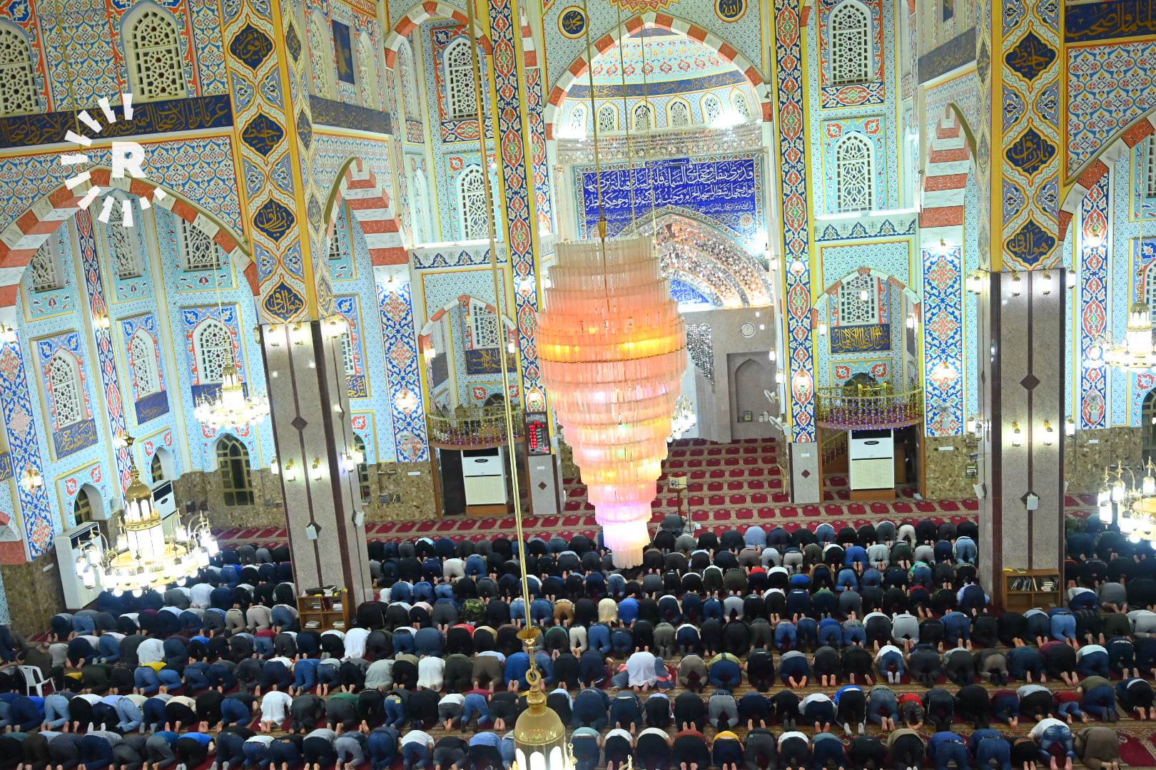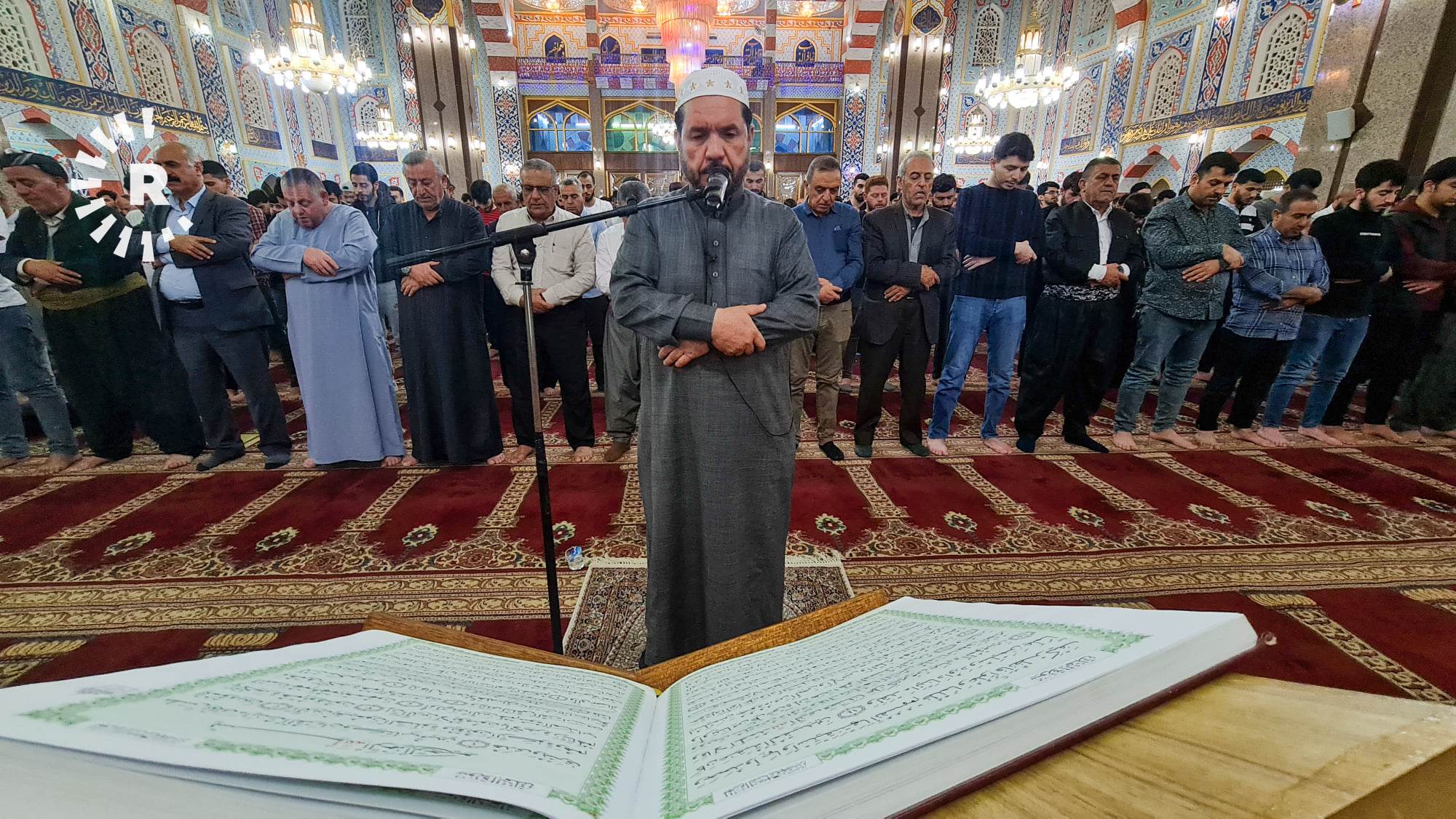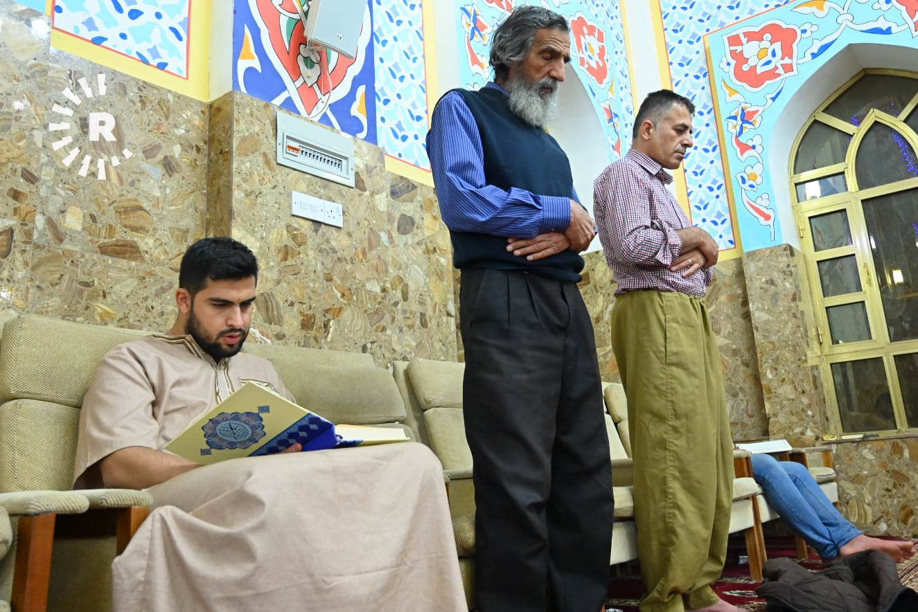 Erbil’deki Celil Xeyat Camisi'ni dolduran cemaat, kılınan teravih namazının ardından Kur'an-ı Kerim okuyup dua etti.