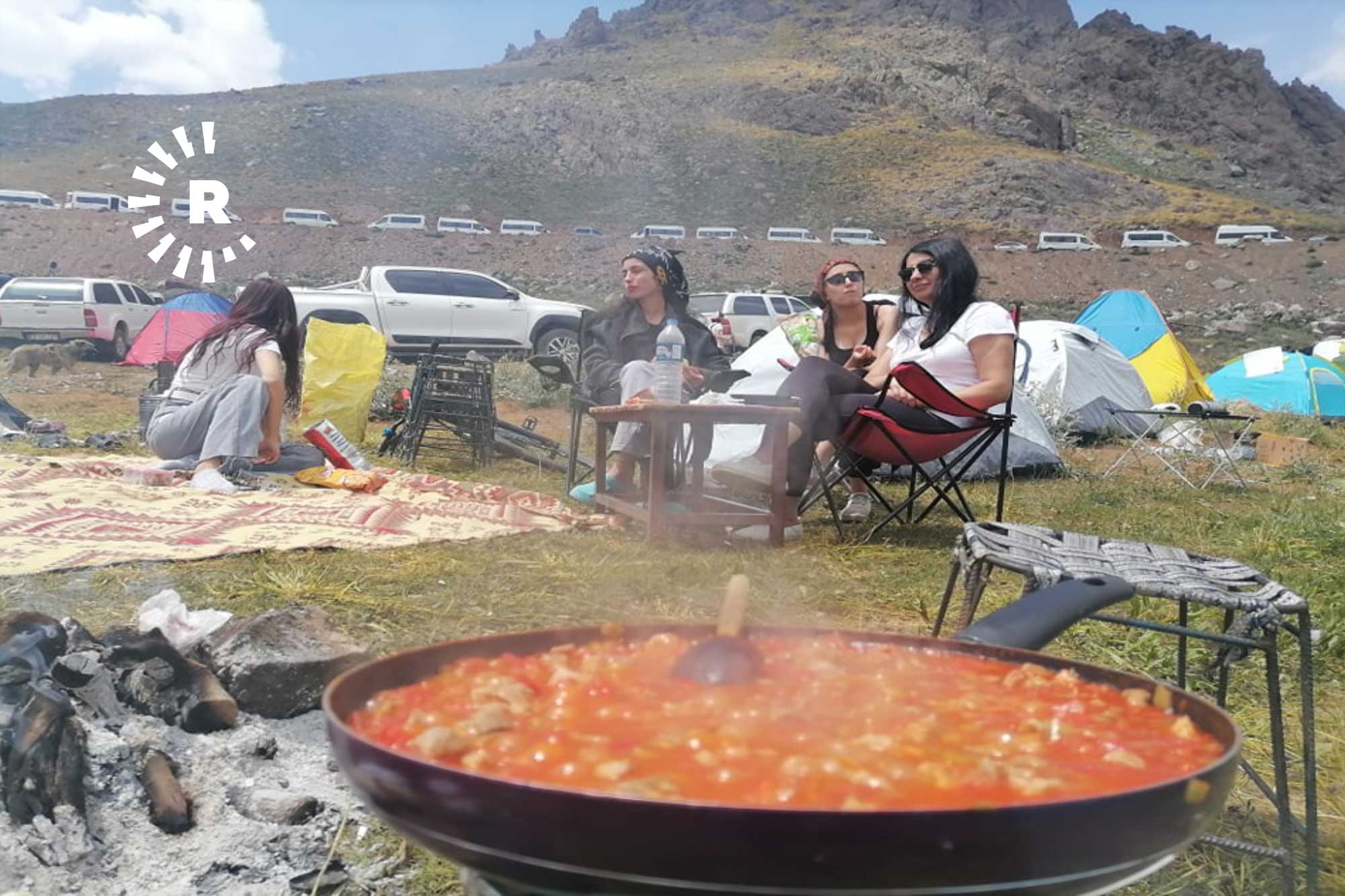 Akşam saatlerinde yakılan kamp ateşi etrafında toplanan kampçılar, Türkçe ve Kürkçe şarkılar eşliğinde halay çekti.