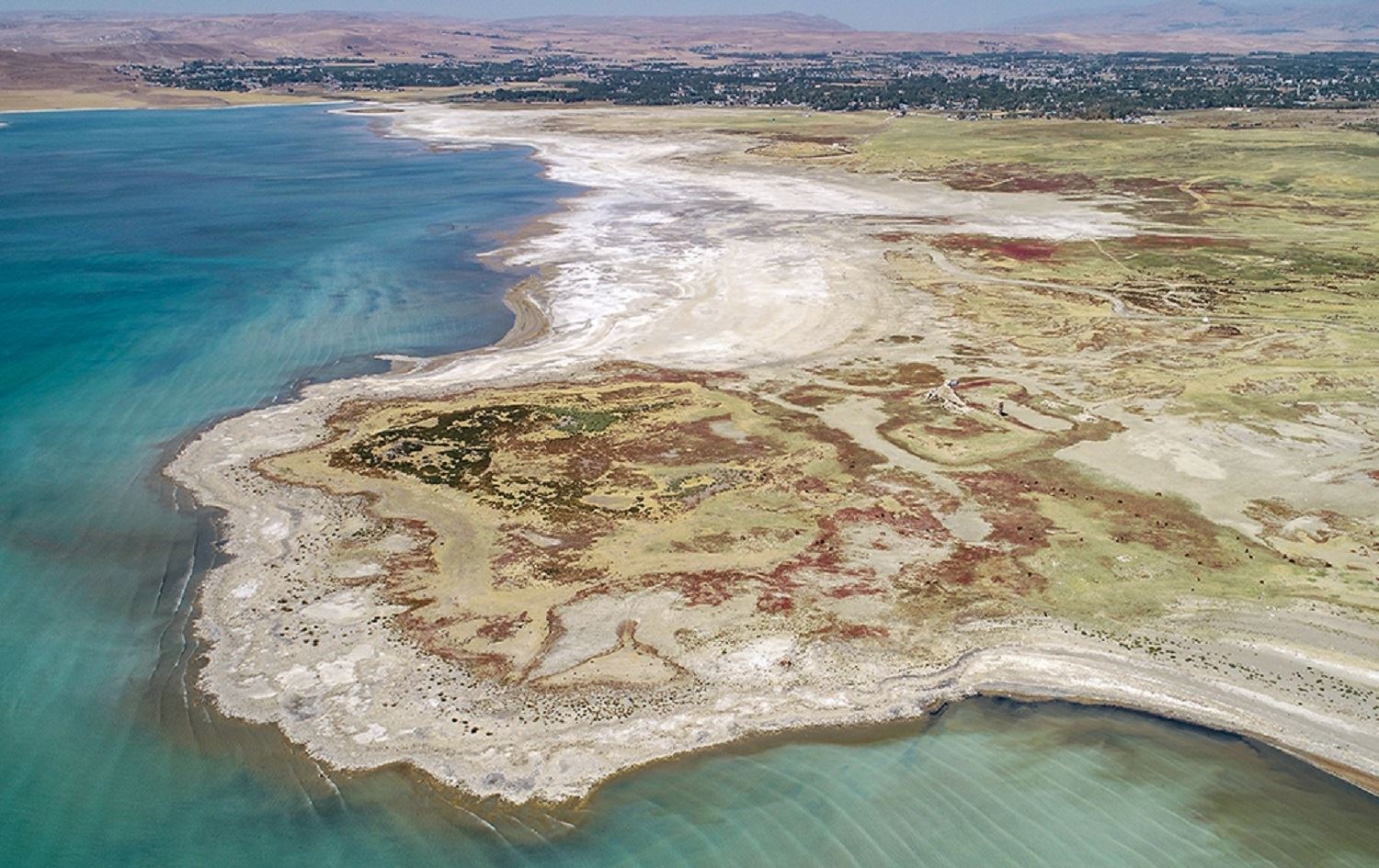 Haber Merkezi - Küresel ısınmaya bağlı sıcaklık artışı ve yoğun buharlaşmanın yaşandığı Van Gölü'nde bazı bölgelerde yer yer suyun 2 kilometreye kadar çekilmesiyle, su altında bulunan birçok kalıntı gün yüzüne çıktı.