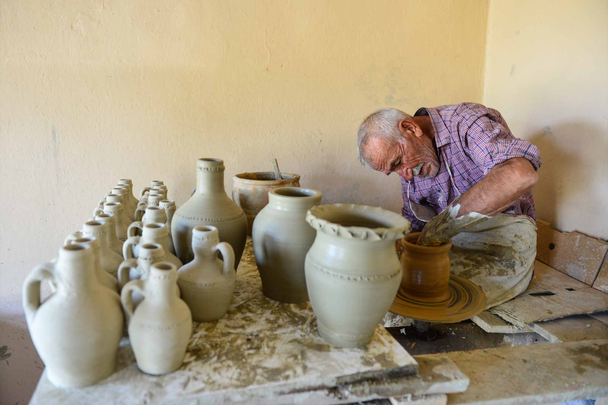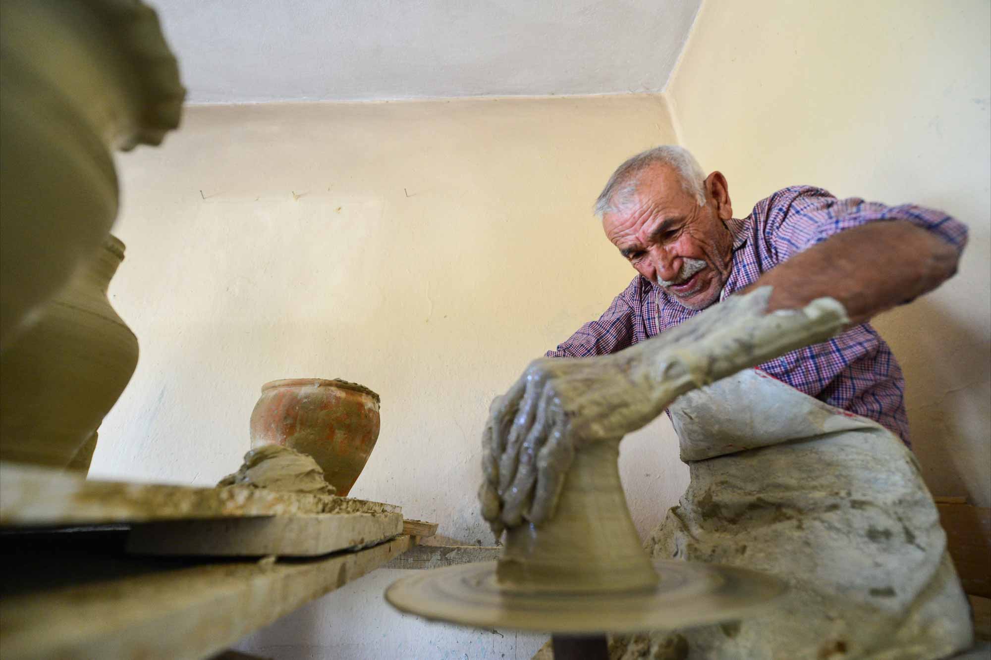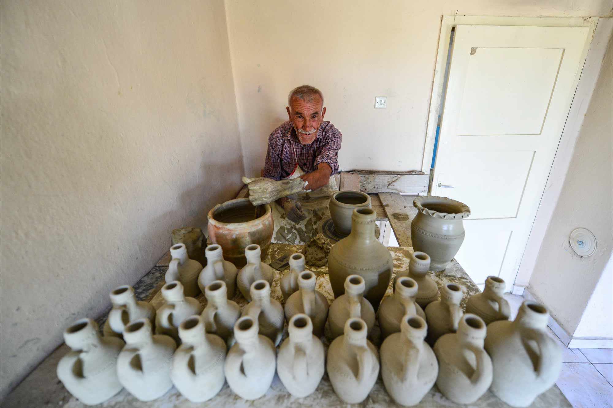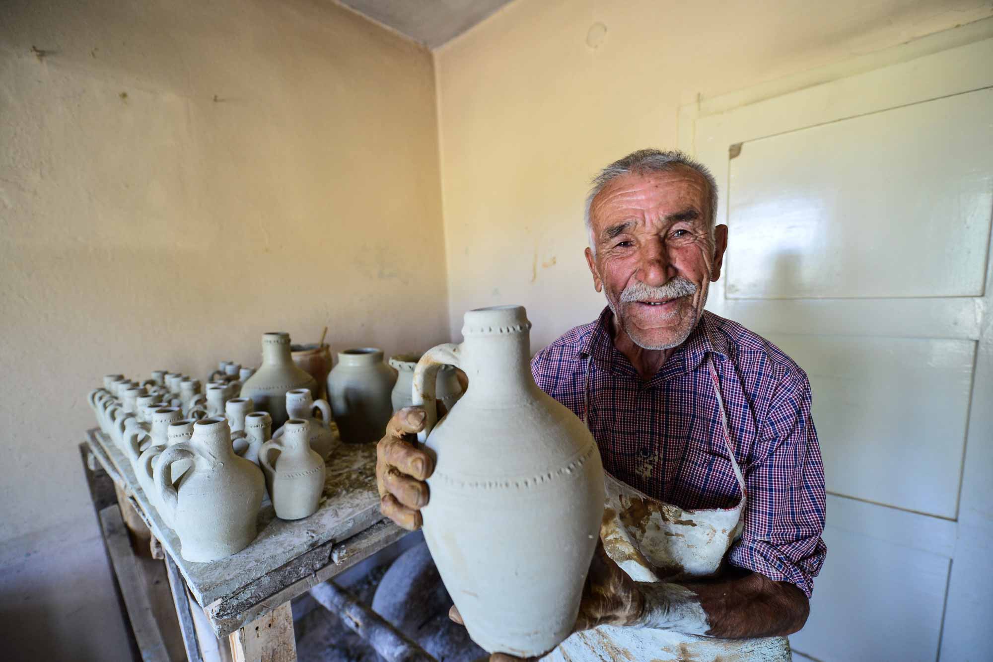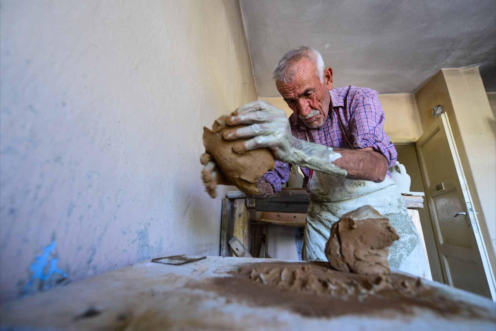 Bu sayede iri tanelerinden ayıkladığı toprağı suyla yoğuran Bozkurt, daha sonra çömlekçi çarkının başına geçerek bir yandan ayağıyla tornayı çeviriyor diğer yandan da elleriyle çamuru şekillendiriyor.