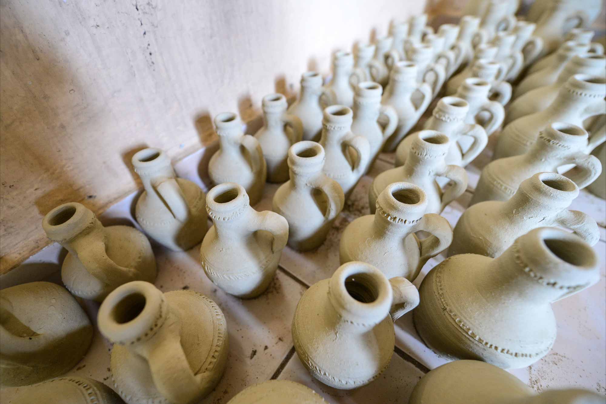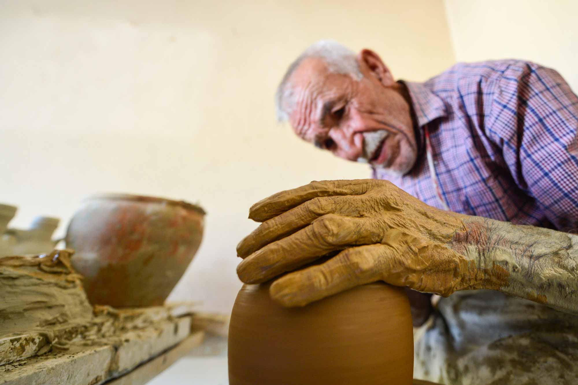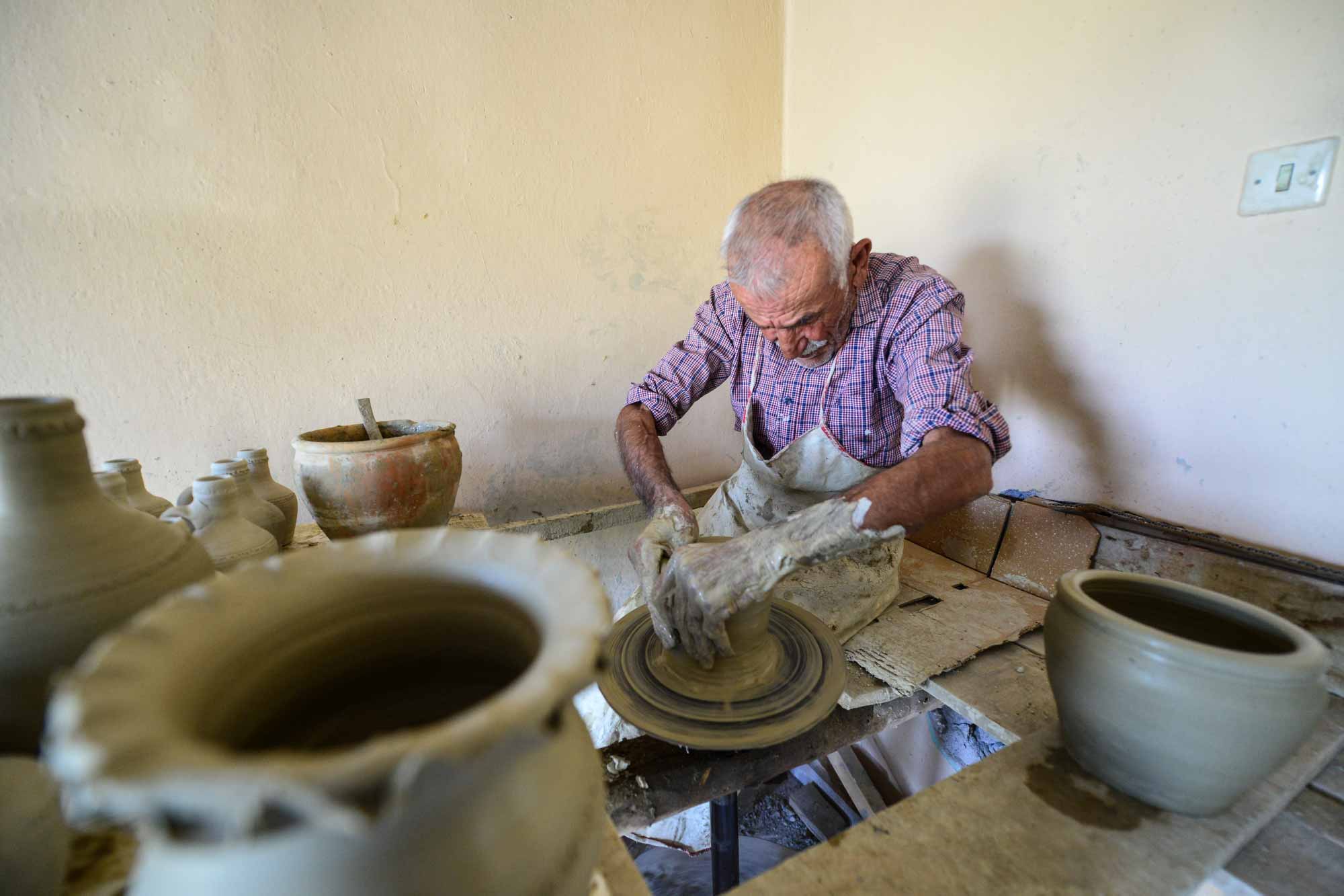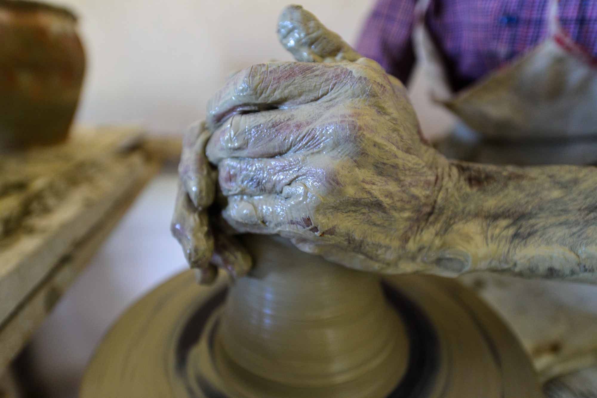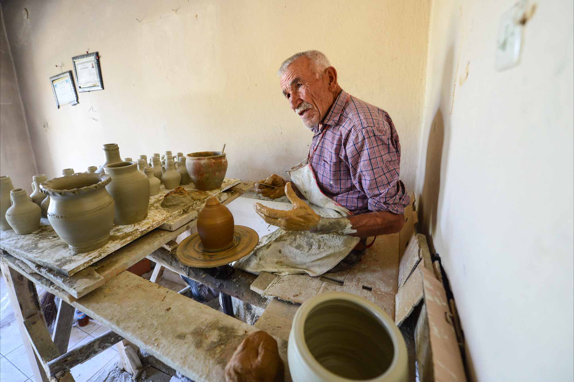 Bu sayede iri tanelerinden ayıkladığı toprağı suyla yoğuran Bozkurt, daha sonra çömlekçi çarkının başına geçerek bir yandan ayağıyla tornayı çeviriyor diğer yandan da elleriyle çamuru şekillendiriyor.