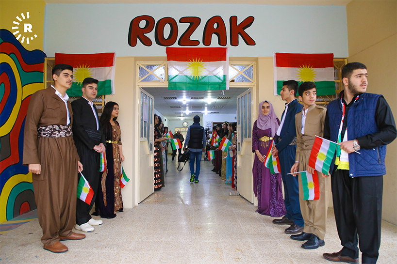 Erbil Rozak Lisesi’nde düzenlenen etkinliğe Kürt milli kıyafeti katılan öğrenciler Kürdistan Bayrağı Günü’nü düzenlenen farklı etkinliklerle kutladı.