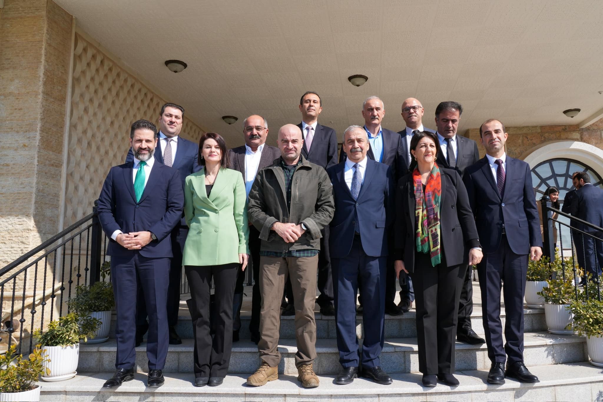 Pervin Buldan ve Sırrı Süreyya Önder başkanlığındaki DEM Parti İmralı heyeti bugün Süleymaniye’de Kürdistan Yurtseverler Birliği (KYB) Genel Başkanı Başkanı Bafıl Talabani ve Kürdistan Bölgesi Başbakan Yardımcısı Kubad Talabani ile bir araya geldi.