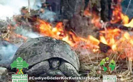 “Bitki ve hayvan popülasyonundaki muazzam çeşitliliğe sahip olan Cudi Dağı 3 günden bu yana yanıyor. 3 gün önce askeri bölgeden yapıldığı iddia edilen top atışları sonucu başlayan yangın devam etmektedir. Kadim coğrafyanın doğasına bu şekilde pervasızca yapılan saldırılara sessiz kalmayacağımızı buradan bütün Kürdistan, Türkiye ve dünya kamuoyuna ilan ediyoruz.”