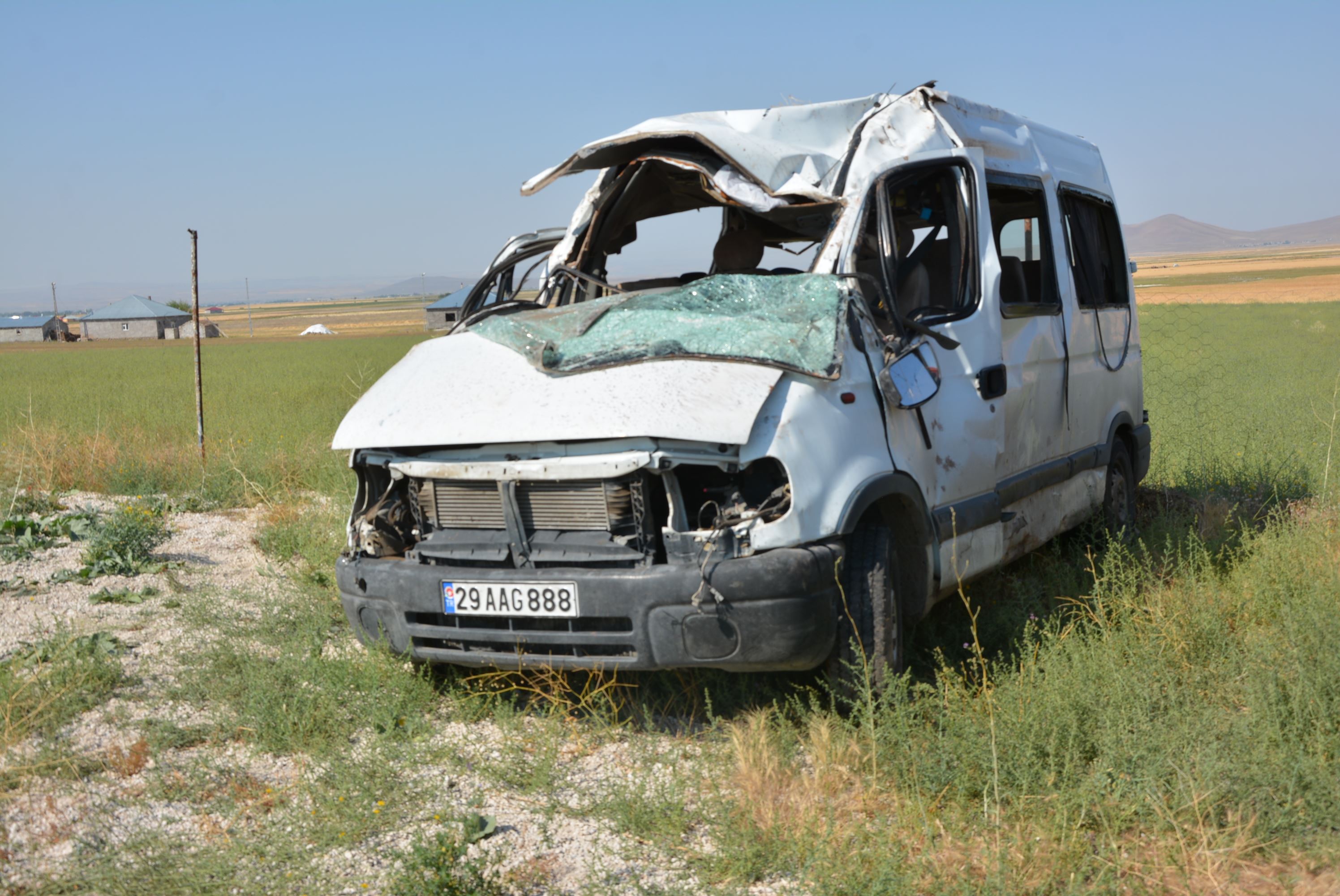 Ş.K yönetimindeki 29 AAG 888 plakalı minibüs, Gökoğlu köyü yakınlarındaki kavşakta refüje çarparak devrildi.