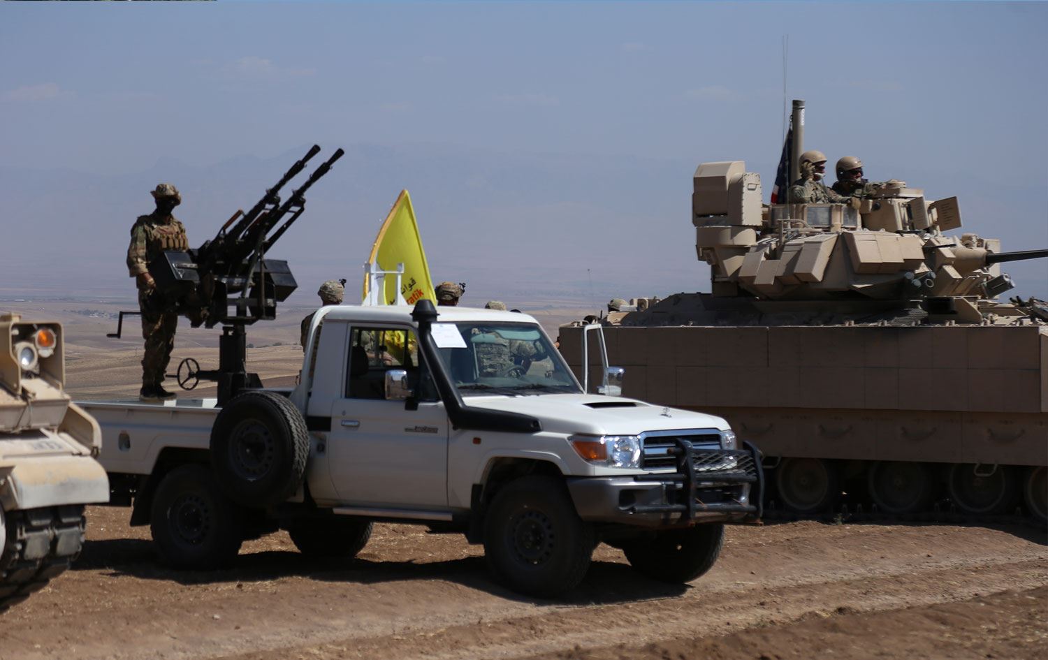 Rojava’nın Kamışlo kentinde gerçekleştirilen tatbikatta uçaksavarlar, Bradley zırhlı muharebe araçları ve çeşitli ağır silahlar kullanıldı.