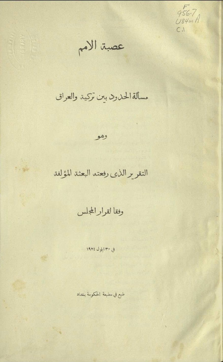 Milletler Cemiyeti(*) Konseyi'nin kararı üzerine 30 Eylül 1924'te kaleme alınan bu rapor, Musul Vilayeti meselesini ve bölgenin ulusal kimliğini anlamak için en önemli kaynaklardan biri olarak kabul ediliyor.