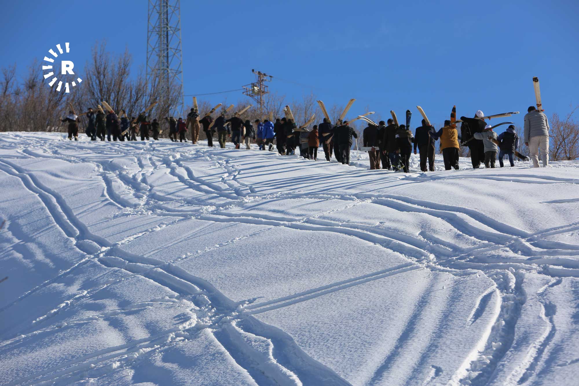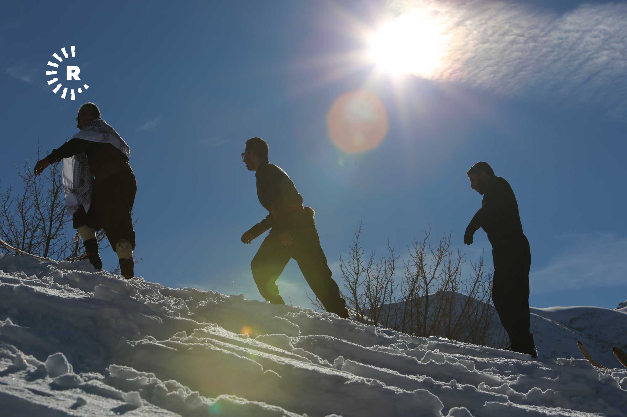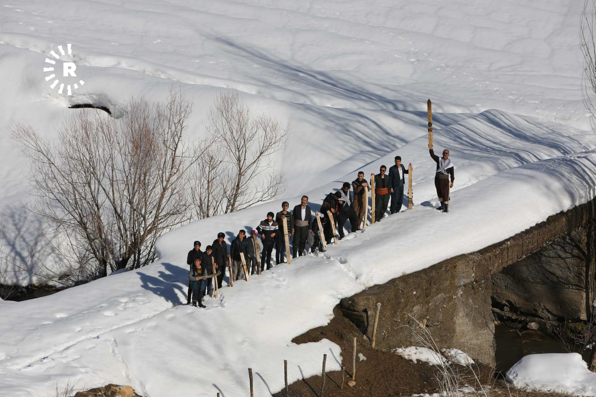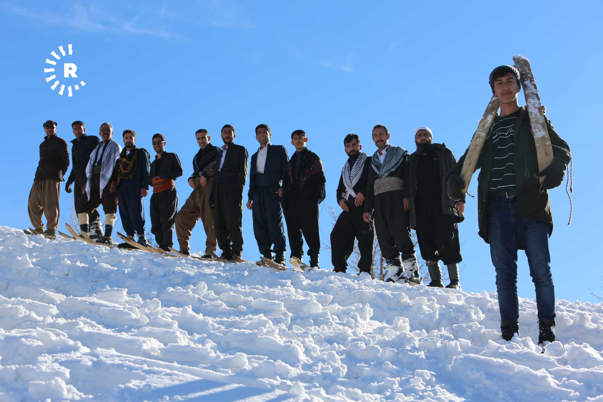 Köyde fırsat buldukça bir araya gelip yaklaşık 2 saatte tırmandıkları karla kaplı tepelerde "liyan" denilen takımı, kayış ve iple ayaklarına sabitleyen gençler, kayarak köyün yakınına kadar iniyor.