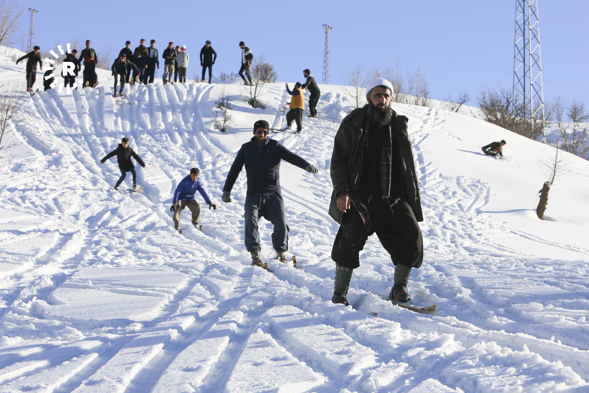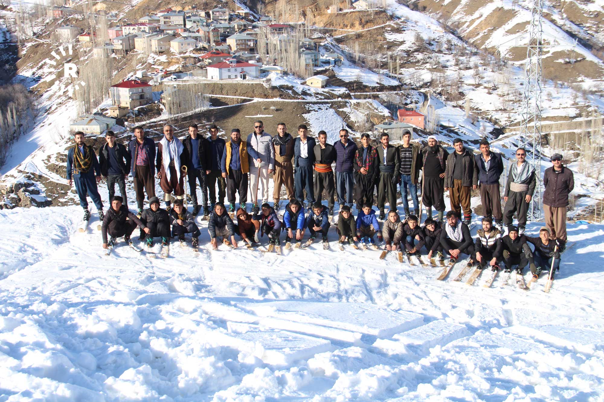Hakkari'nin Şemdinli ilçesine bağlı Aşağı Kayalar (Katune) köyünde gençler, kendi imkanlarıyla yaptıkları tahta kayaklarla karlı tepelerde kayak yaptı.