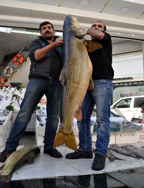 Güneydoğu Anadolu Bölgesi'ndeki akarsularda yayaşan turna balığının bu büyüklükte olanlarına nadiren rastlandığını ifade eden Saygun, kilosunu 25 liradan sattıklarını söyledi.