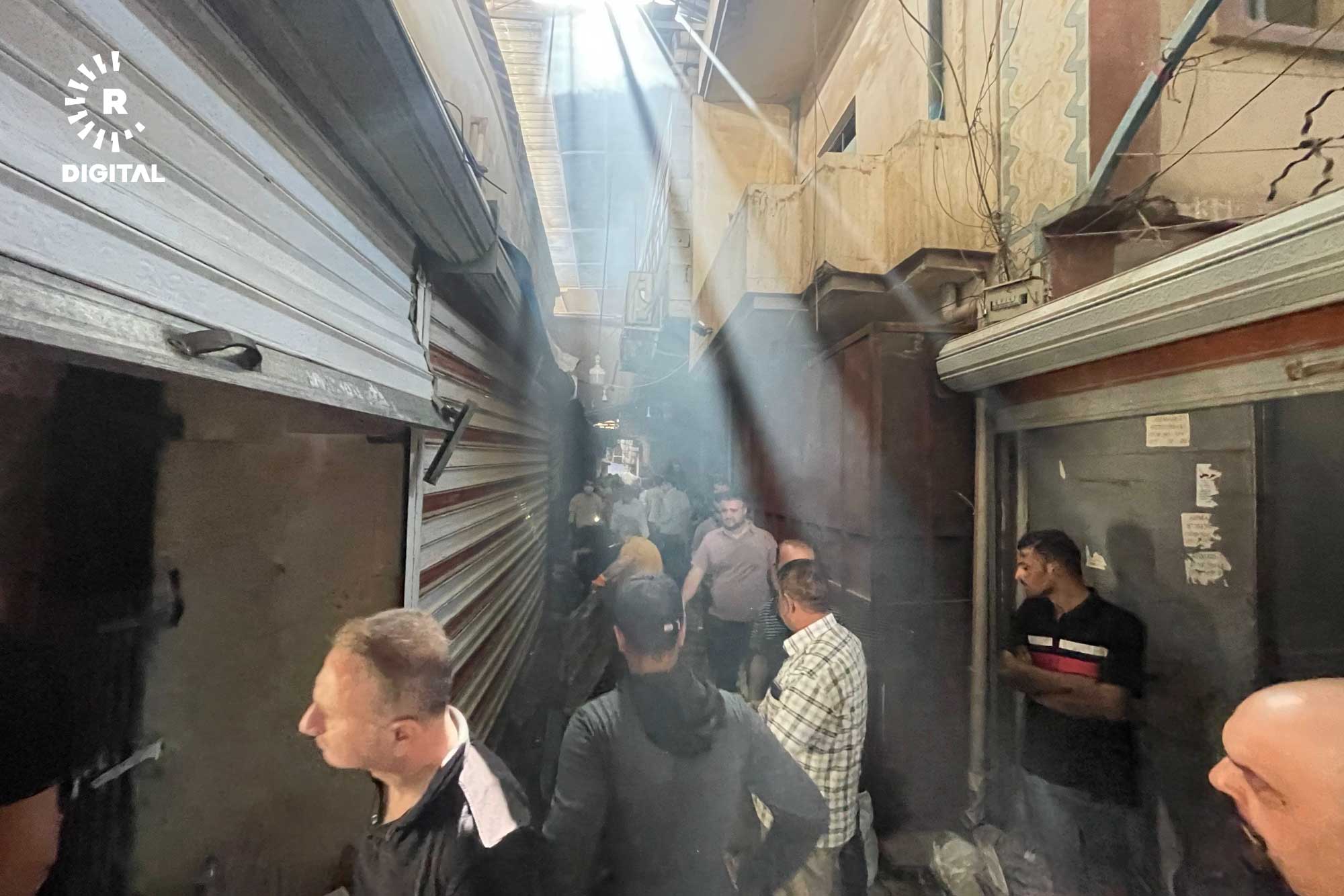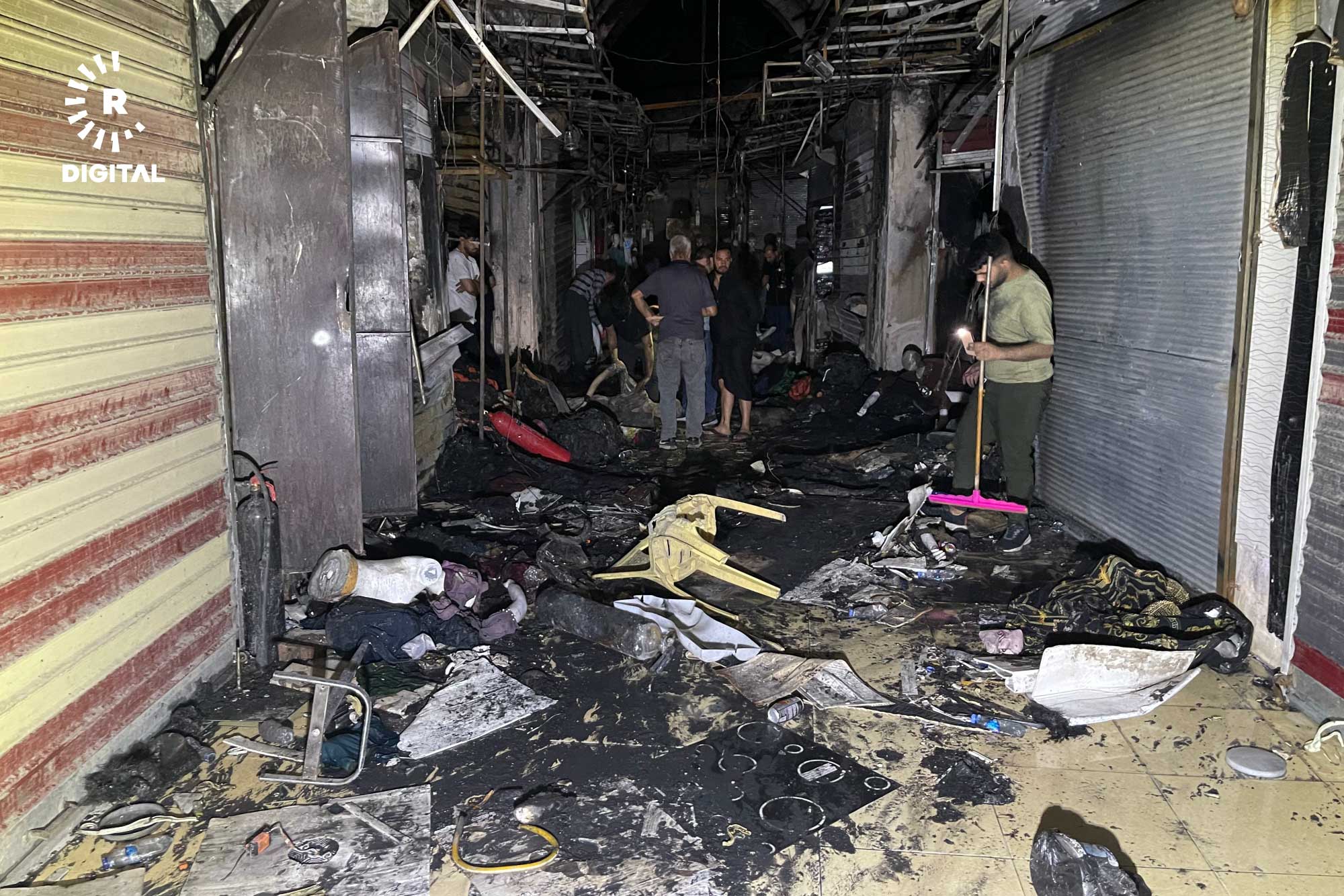 Rûdaw'a konuşan esnaf, çarşının farklı yerlerinde eş zamanlı yangınlar çıkması nedeniyle olayı şüpheli bulduklarını anlattı.