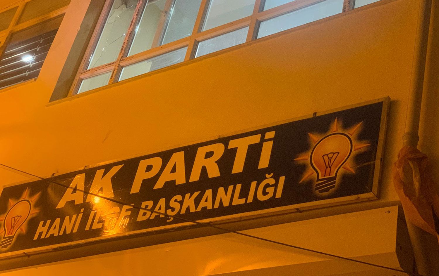 Haber Merkezi - Diyarbakır'ın Hani ilçesinde, AK Parti İlçe Başkanlığı’na molotofkokteyli atıldı. Dün gece saat 21.00 sıralarında düzenlenen saldırı nedeniyle ölen ya da yaralanan olmadı.