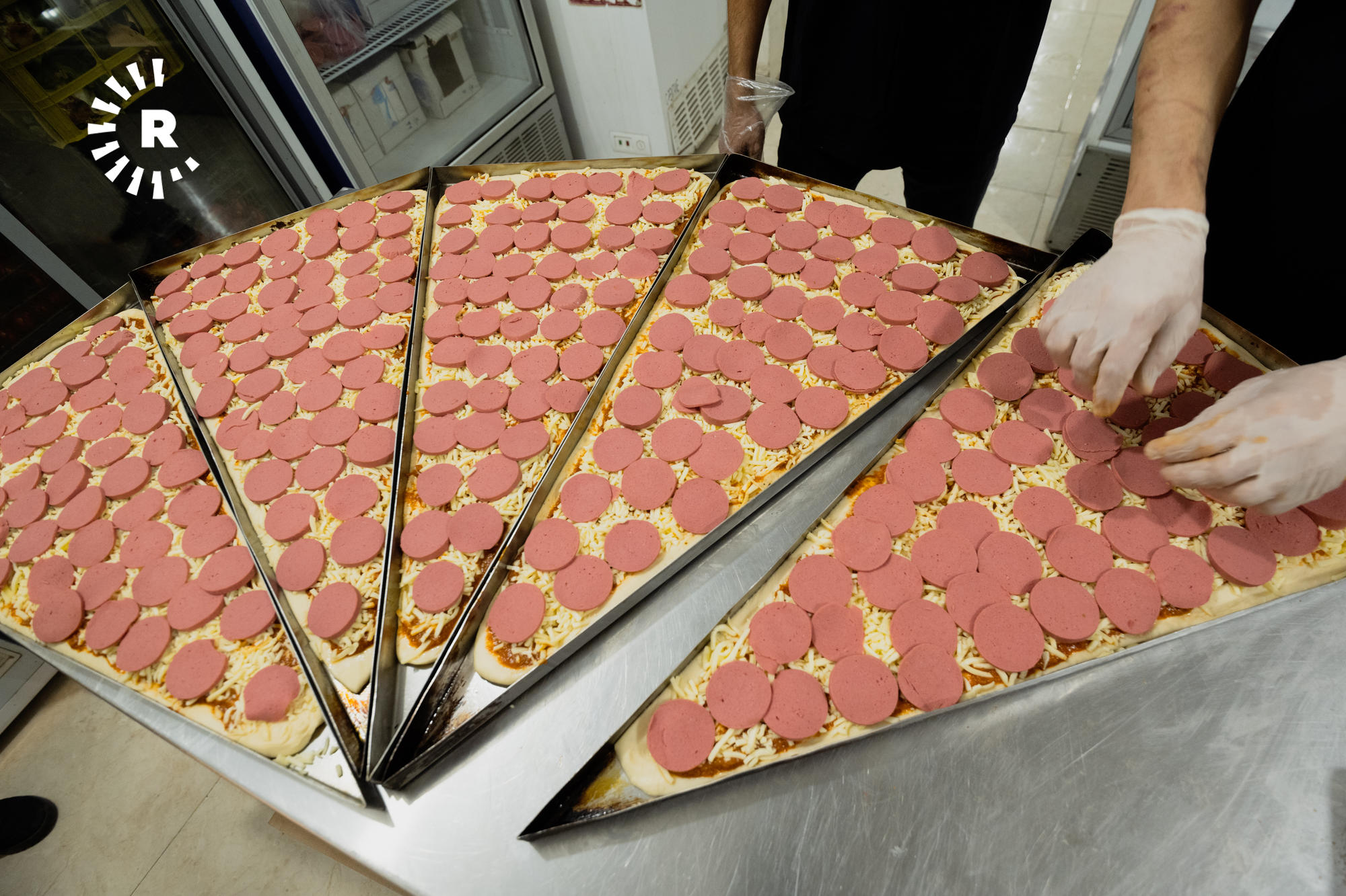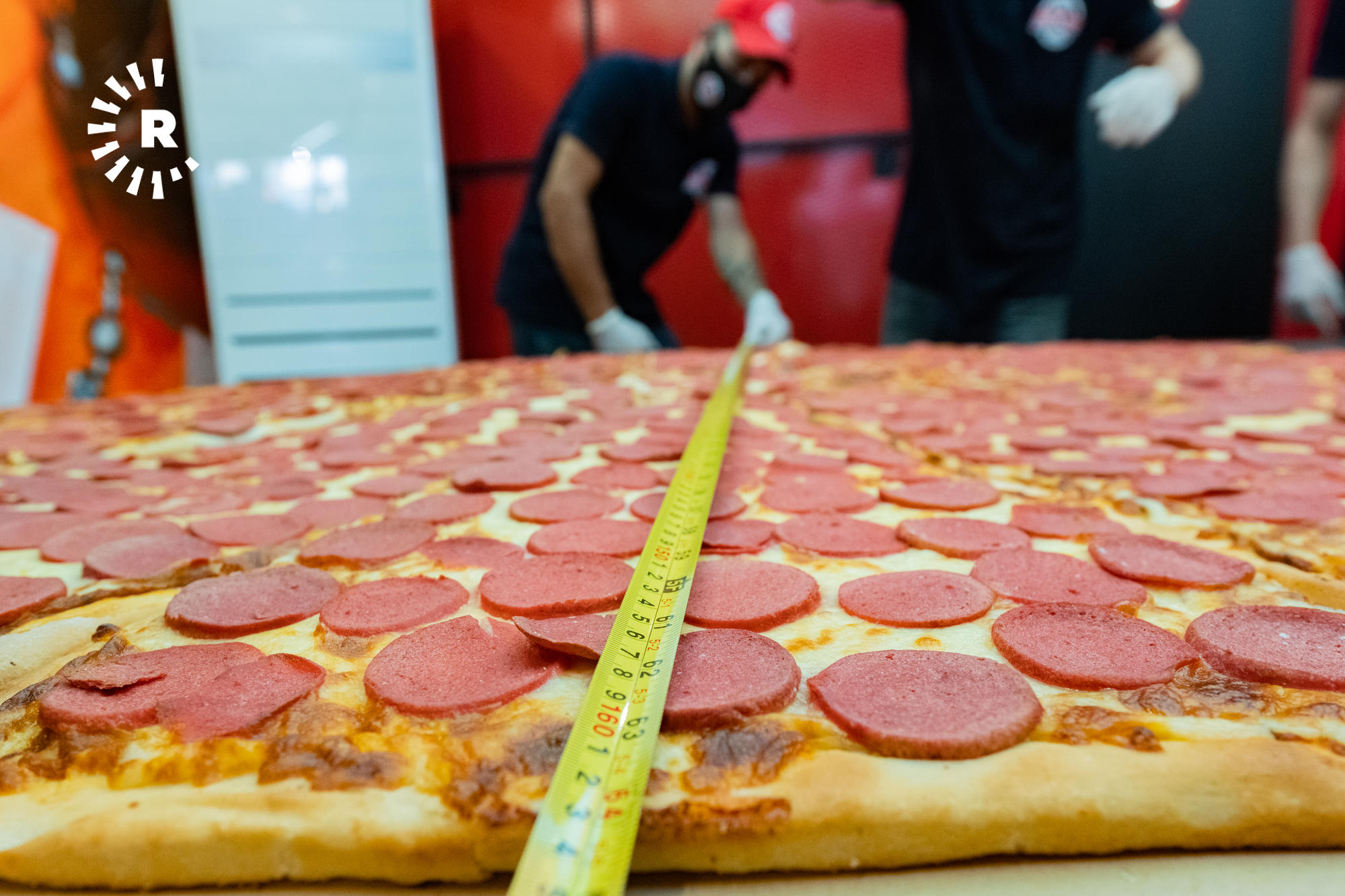 Yaklaşık bir saat içerinde hazırlanan pizza için 15 kilogram peyni, 12 kilogram un, 10 kilogram beyaz et ve sucuk kullanıldı. 12 parçadan oluşan pizza dilimlerinin her birinin uzunluğu ise 80 santimetre.