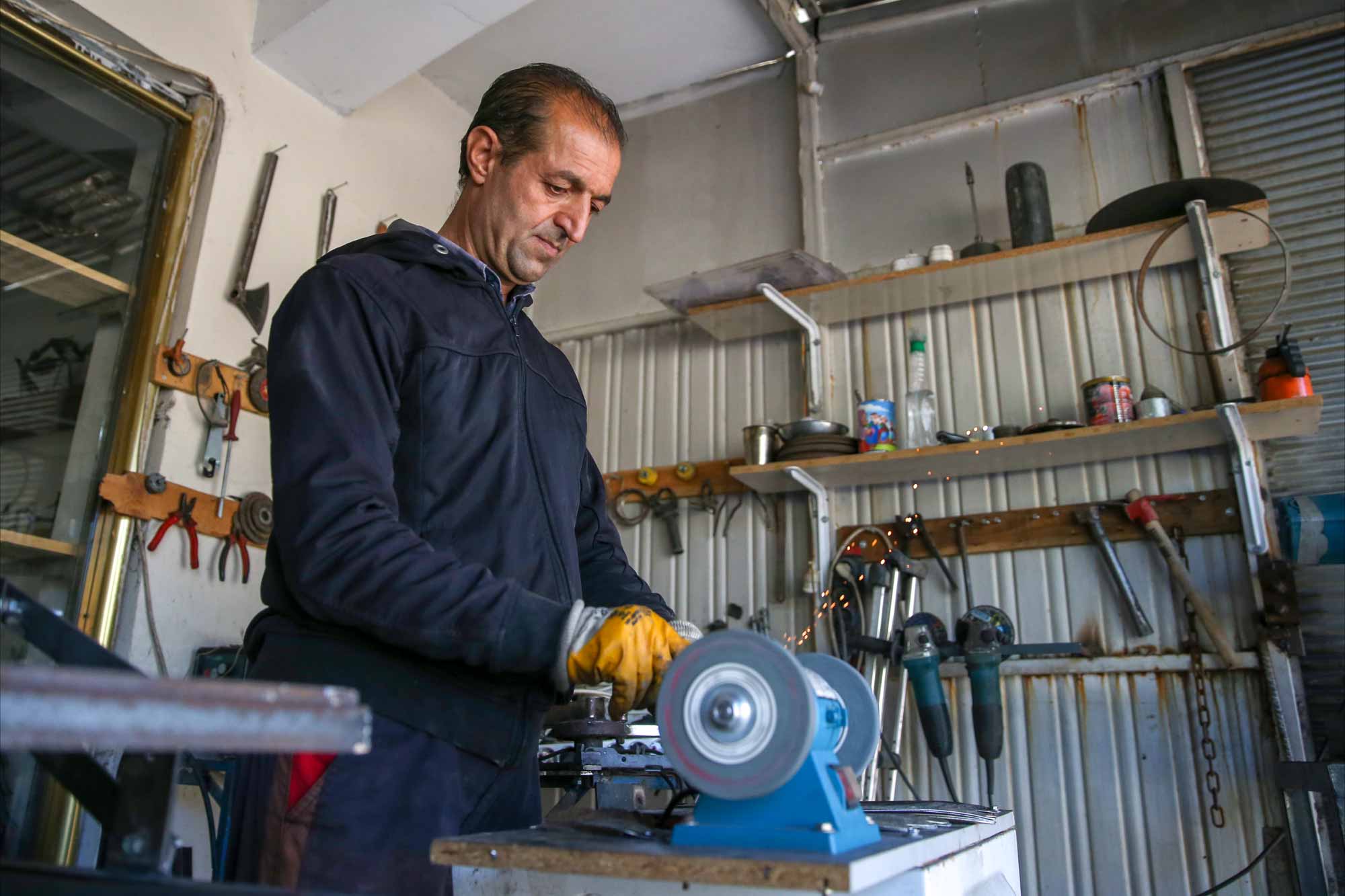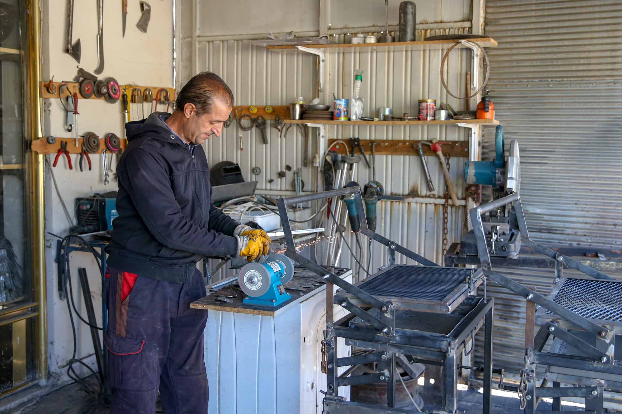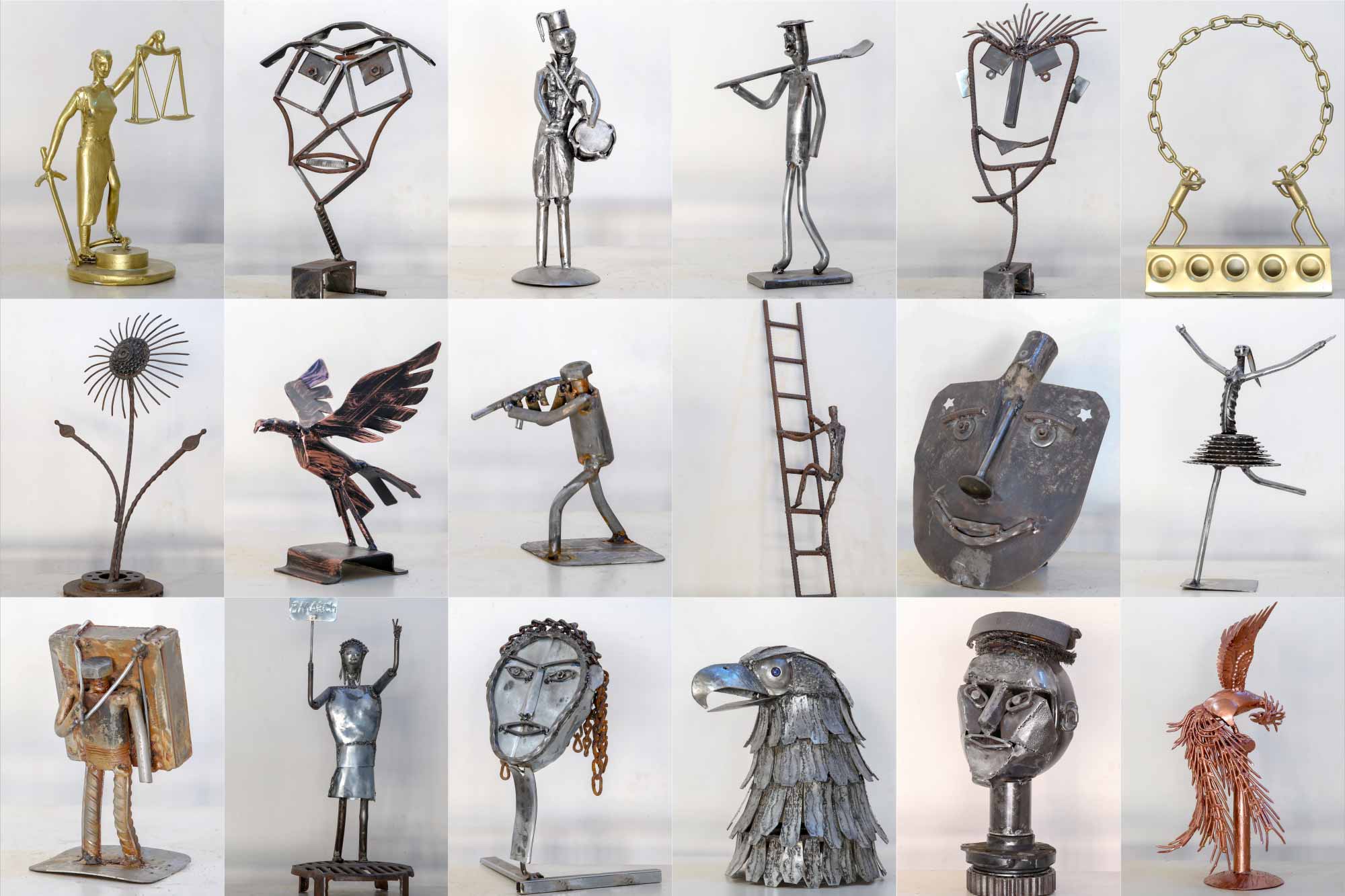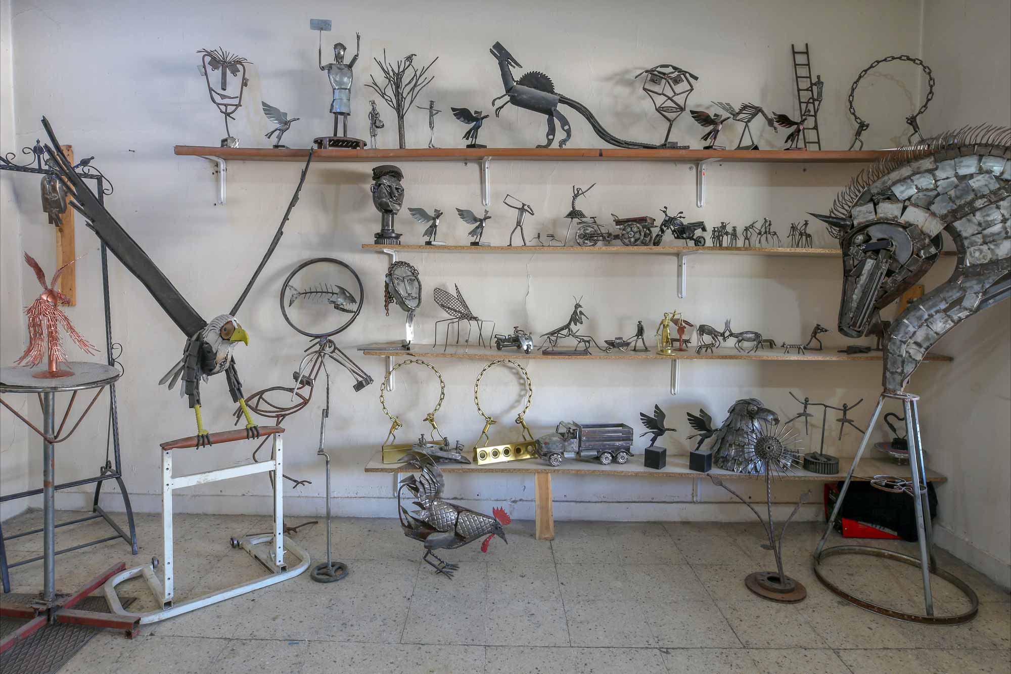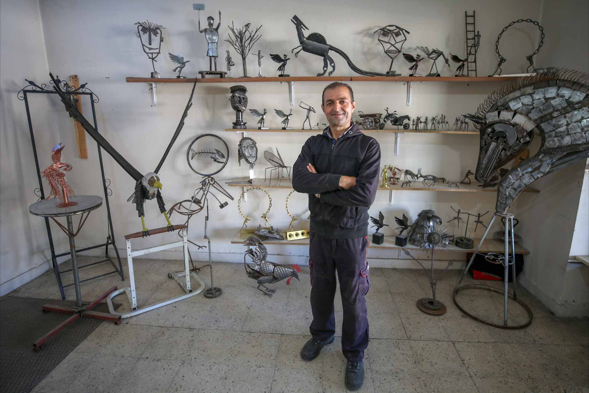 Mutii, hurdacılardan topladığı demir parçalarını atölyesinde işleyerek birbirinden güzel eserler ortaya çıkarıyor.