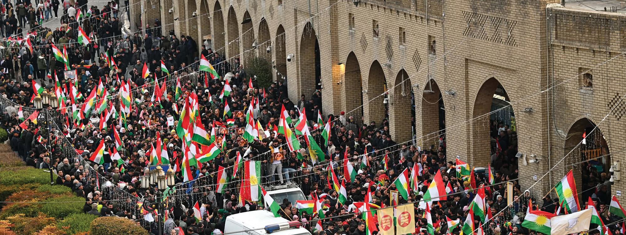 Erbil Kalesi önündeki meydanı dolduran binlerce kişi Kürt birliğine dikkat çekti.