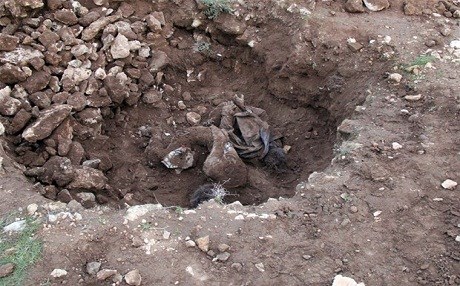 Çobanların gösterdiği bölgede yapılan kazıda, yan yana gömülmüş ve elleri arkadan bağlı 20- 25 yaşlarında bir kadın ve erkeğe ait 2 ceset bulundu.