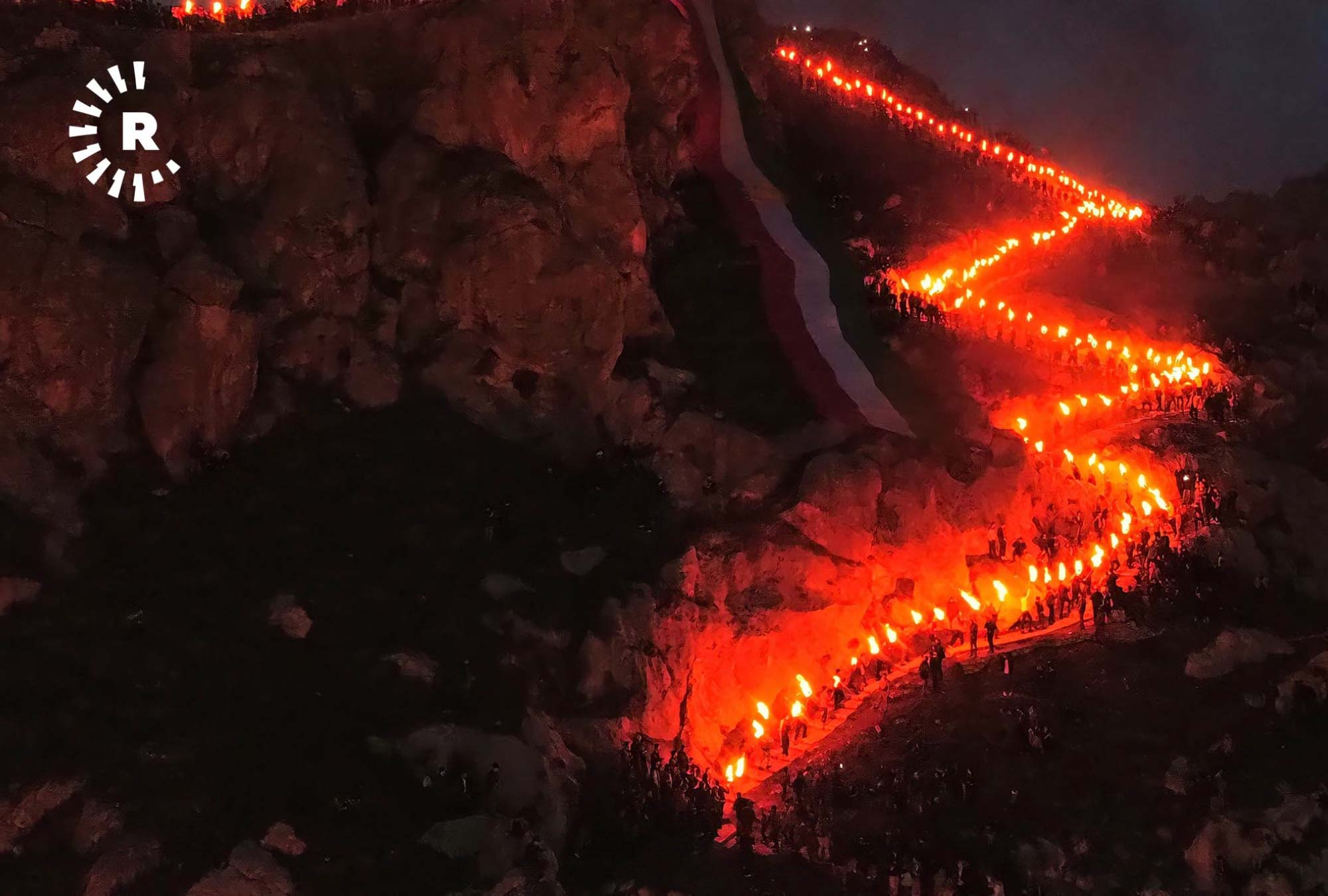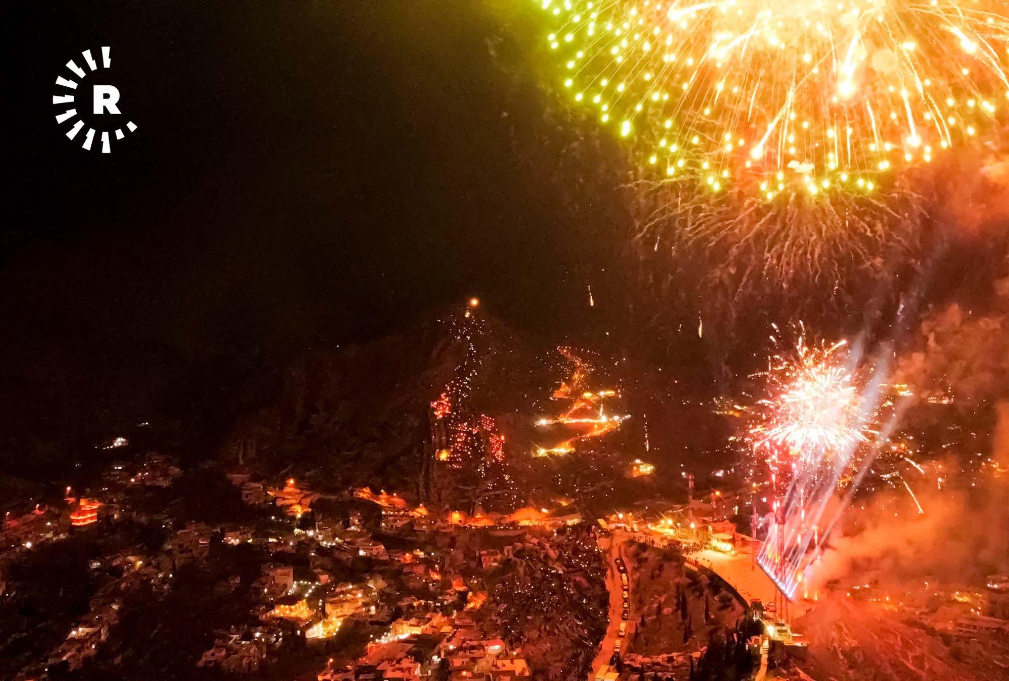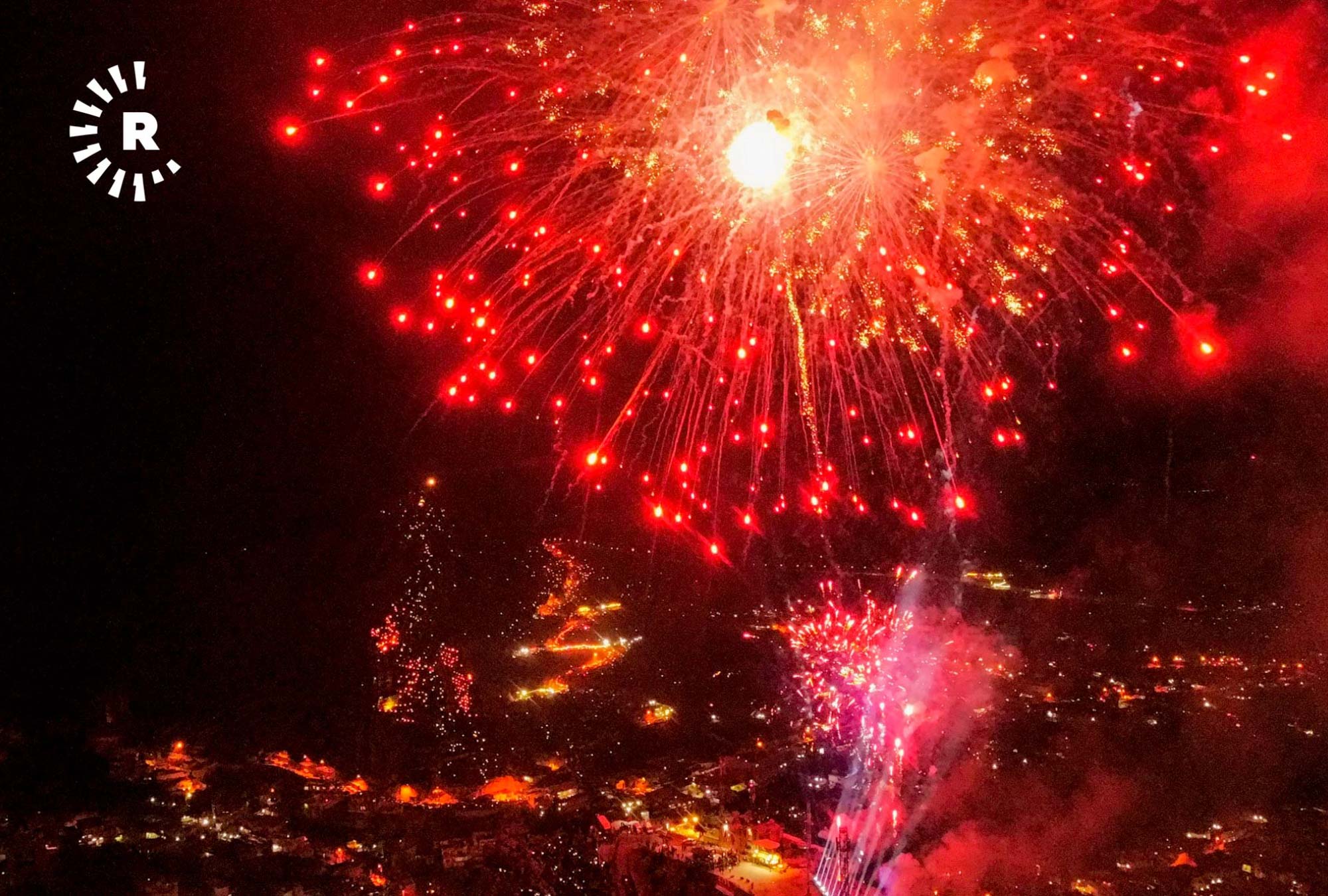 Kutlamalarda meşalelere havai fişekler de eklenince harika bir görsel manzara oluştu.
