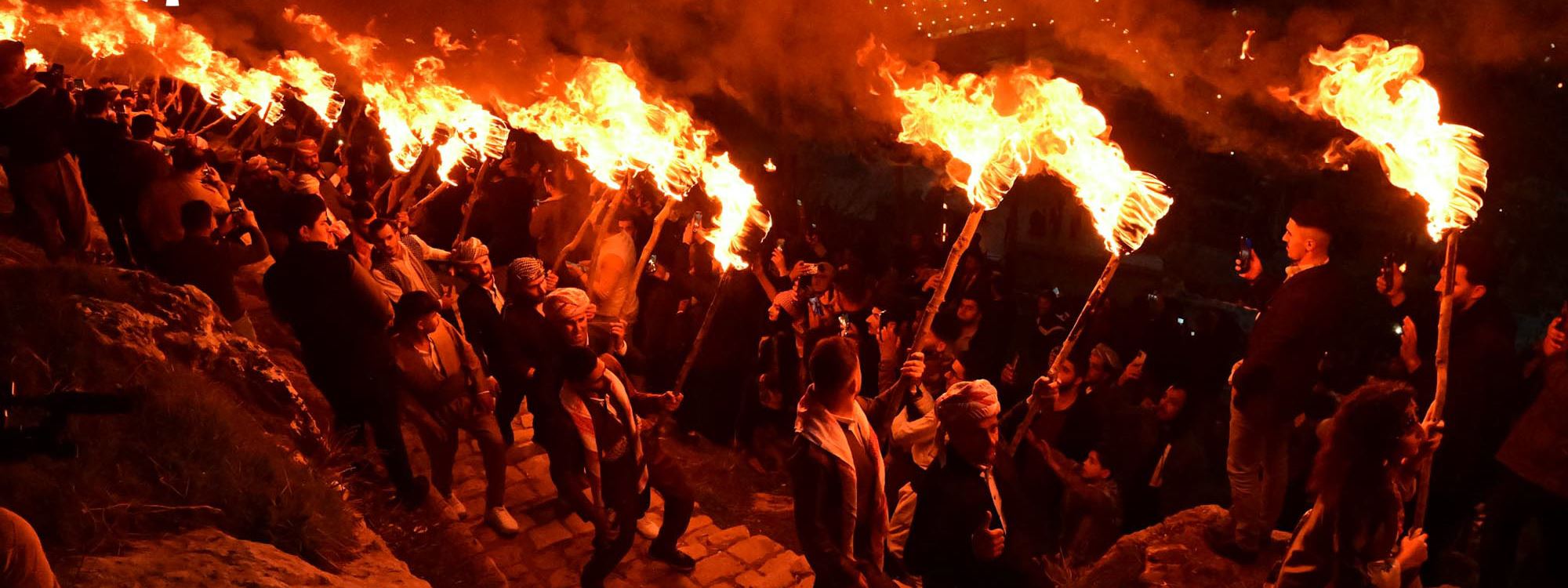 Bu yılki kutlamalar için 100 metre uzunluğunda, 9 metre genişliğinde dev bir Kürdistan bayrağı hazırlandı. Akşam saatlerinde ellerinde meşalelerle gençler ilçenin etrafını saran ve “Girê Top, Kelê ve Kela Kewvin tepelerine tırmandı.