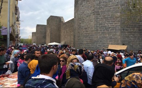 Hz. Süleyman ve 27 Sahabenin türbelerinin bulunduğu tarihi iç kalede yoğunluk ve izdiham, Sur İlçesi'nde trafiği de aksatırken, ziyaretçi yoğunluğu nedeniyle tarihi iç kalenin kapısı önünde büyük izdiham oldu.