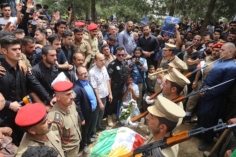 Mustafa'nın naaşı Süleymaniye kentindeki Goran Hareketi parti merkezinin de yer aldığı Zergete Tepesi'nde düzenlenen resmi törenin ardından toprağa verildi.