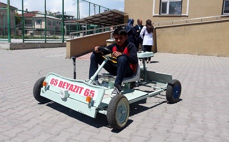 Haber Merkezi - Van'ın Erciş ilçesinde ortaokul öğrencisi Yasin Tukuç, atık malzemeler ve motosiklet motoru kullanarak "go kart" aracı yaptı.