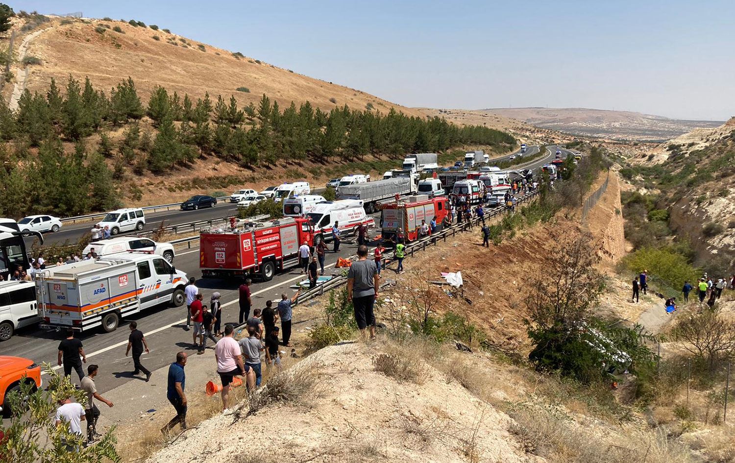 Antep'te 15 kişinin hayatını kaybettiği, 22 kişinin yaralandığı zincirleme kazadan olay yeri görüntüleri#Gaziantep pic.twitter.com/CrvFUs87Bj