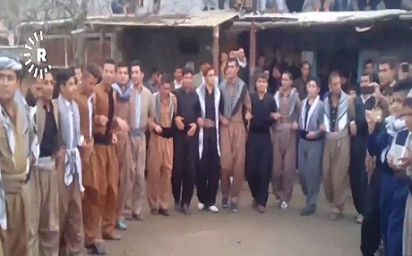 Bölgedeki gençler yüksek sesle Kürt milli marşları eşliğinde Kürdistan bayrağını taşıdı.