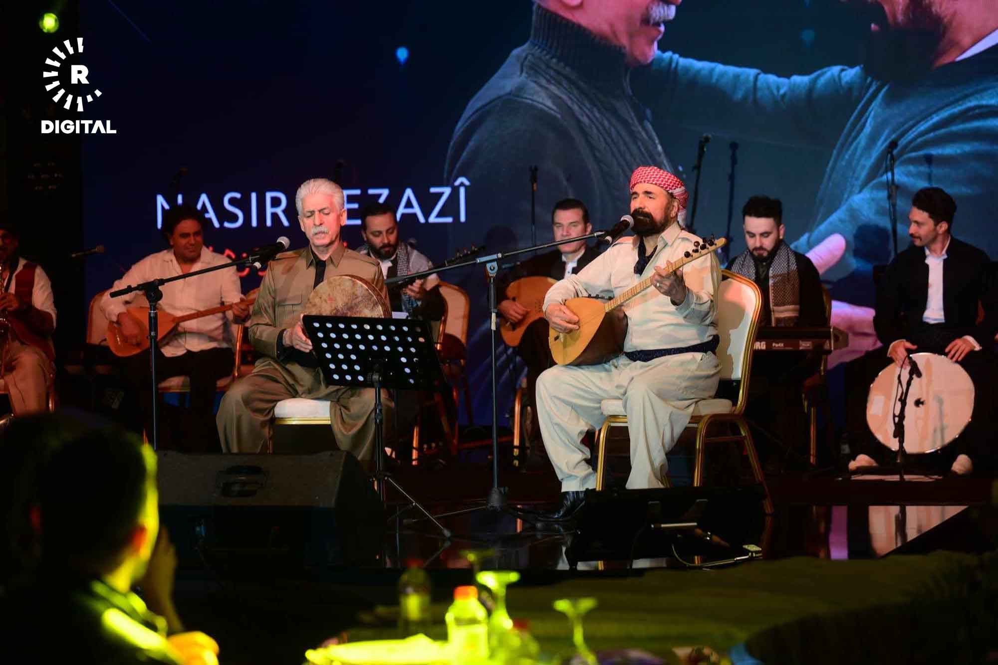 Gecenin başlangıcında sahne alan Şivan Perwer ile Nasır Rezazi, birlikte bir kaç parça söyledi.