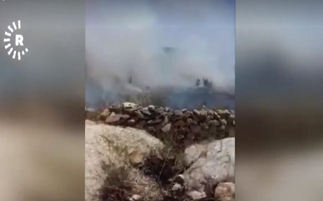 Rûdaw’a ulaşan görüntülerde, Ketiba el-Hamza güçleri Berada köyünde bir köylünün gözleri önünde ekinlerini yaktığı görülüyor.