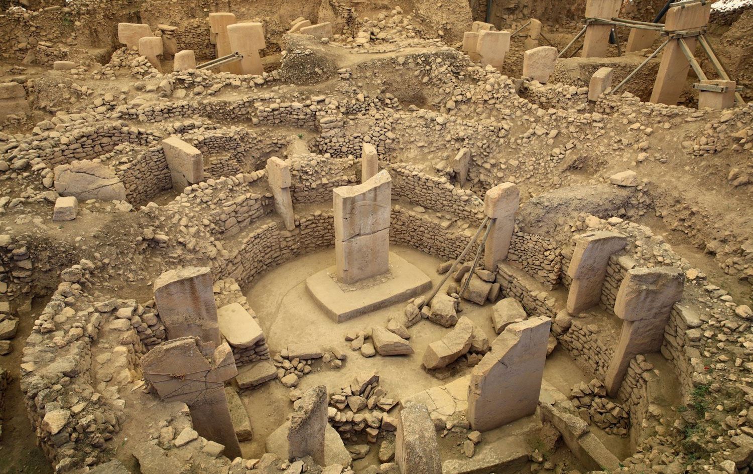 Bölgede şimdiye kadar Neolitik döneme ait yabani hayvan figürlü T biçimli dikili taşlar, 8-30 metre çapında dairesel ve dikdörtgen şekilli dünyanın en eski tapınak kalıntıları, çok sayıda yabani hayvan figürü, dikili taşlar ve yaklaşık 12 bin yıl öncesine ait olduğu belirtilen 65 santimetre uzunluğunda insan heykeli gibi tarihi eserler bulundu.