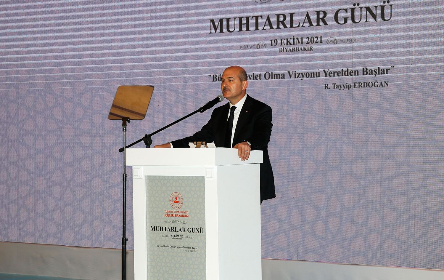 Süleyman Soylu, bir otelde Muhtarlar Günü dolayısıyla düzenlenen programda konştu. Soylu, afetlerde ve koronavirüsle mücadele sürecinde muhtarların yürüttüğü çalışmaların önemine değindi.