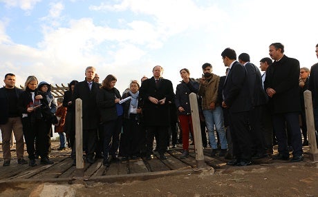Berger başkanlığındaki 24 AB ülkesinin büyükelçisinden oluşan heyet, Harran ilçe merkezinde dünyanın ilk İslam üniversitesinin kalıntılarının bulunduğu rasathane ve Emeviler döneminden kalma Ulu Cami kazı alanını gezdi.