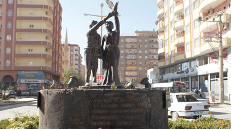 Uğur Kaymaz’ın anısına dikilen heykel de Kızıltepe Belediyesi’ne atanan kayyum tarafından kaldırılmıştı.