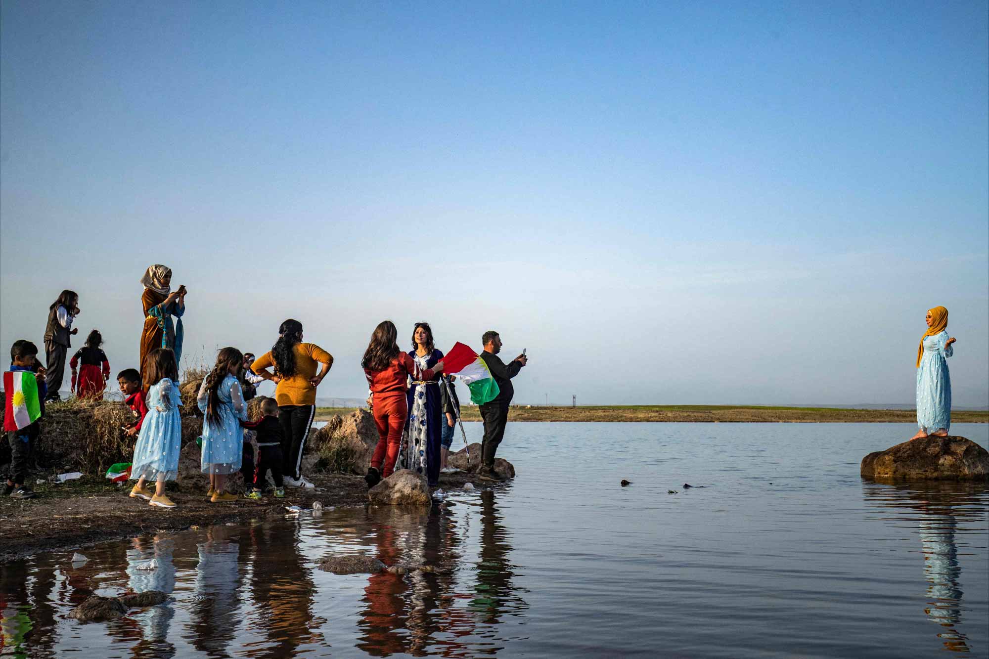 AFP - Rojava’nın Tirbe Spi kentine bağlı Mizgeftê köyüde halk, Newroz kutlaması için gölet kyısını tercih etti. Milli kıyafetlerin giyildiği, kürdistan bayraklarının açıldığı etkinlik renkli görüntülere sahne oldu.
