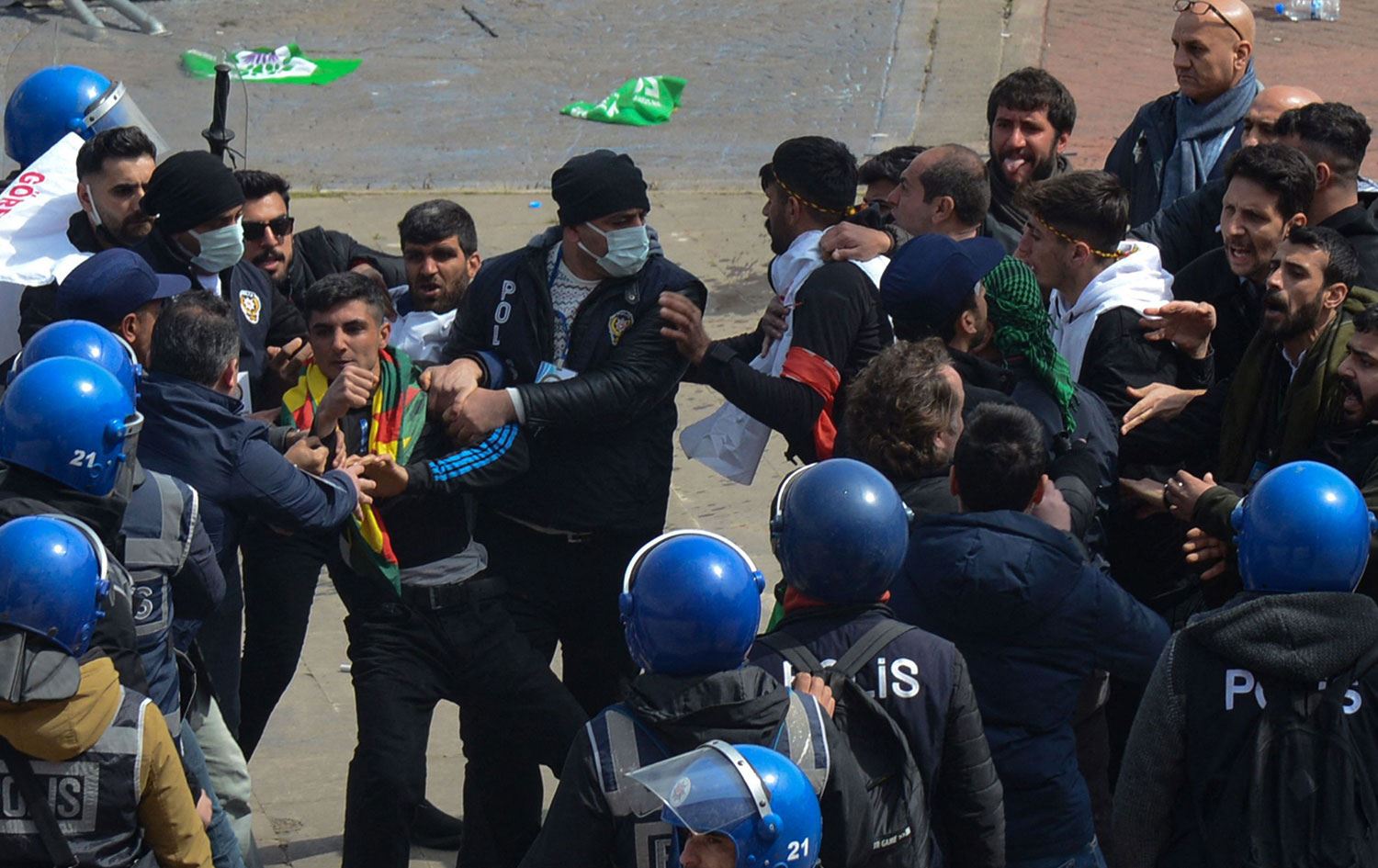 Diyarbakır Emniyet Müdürlüğü gözaltılarla ilgili dün yaptığı açıklamada, “7000 polis ile çok sıkı güvenlik önlemleri alınan Nevruz tedbirlerinde, polise taş atan, arama noktalarından geçmek istemeyen, yasaklanmış örgüt simgeleri taşıyan, yasadışı slogan atan, polise mukavemette bulunan 298 şüpheli göz altına alınmıştır. 15 polisimiz ise hafif şekilde yaralanmıştır” demişti.