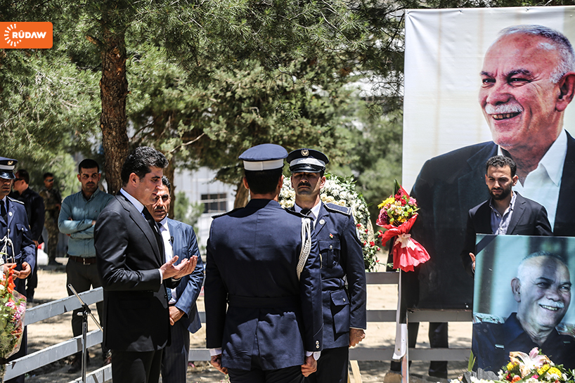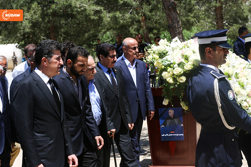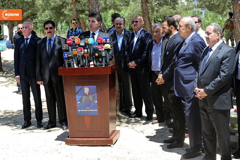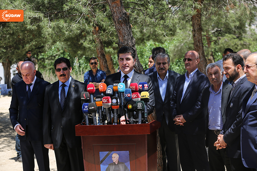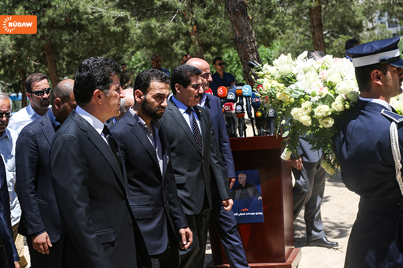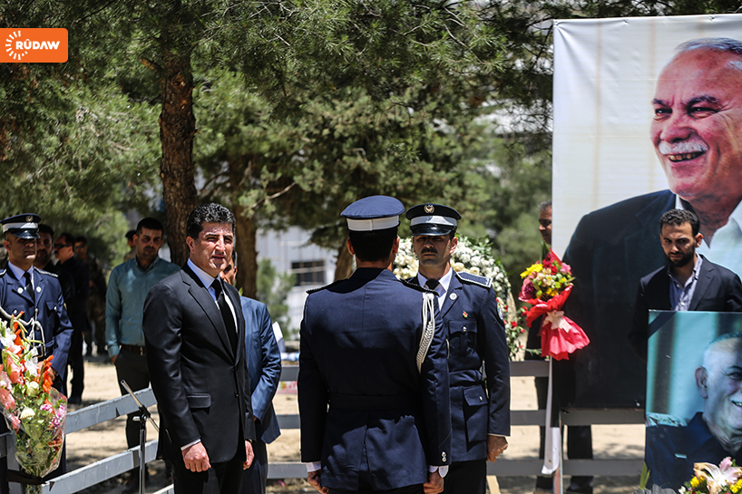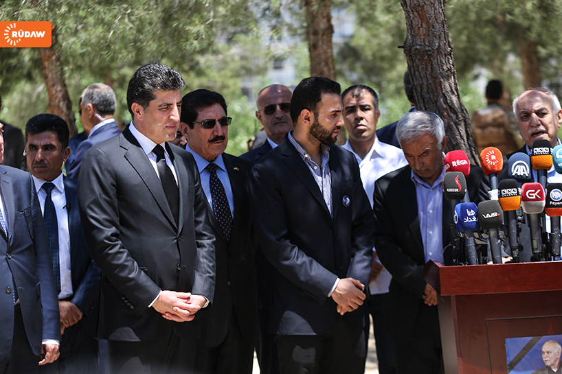 Barzani burada kısa bir konuşma yaparak Newşirwan Mustafa’nın hayatından söz etti.