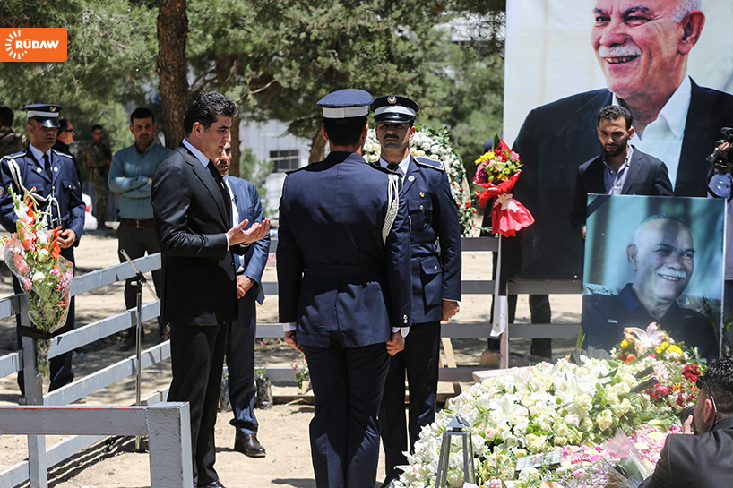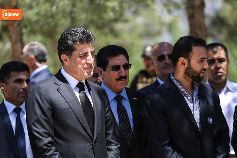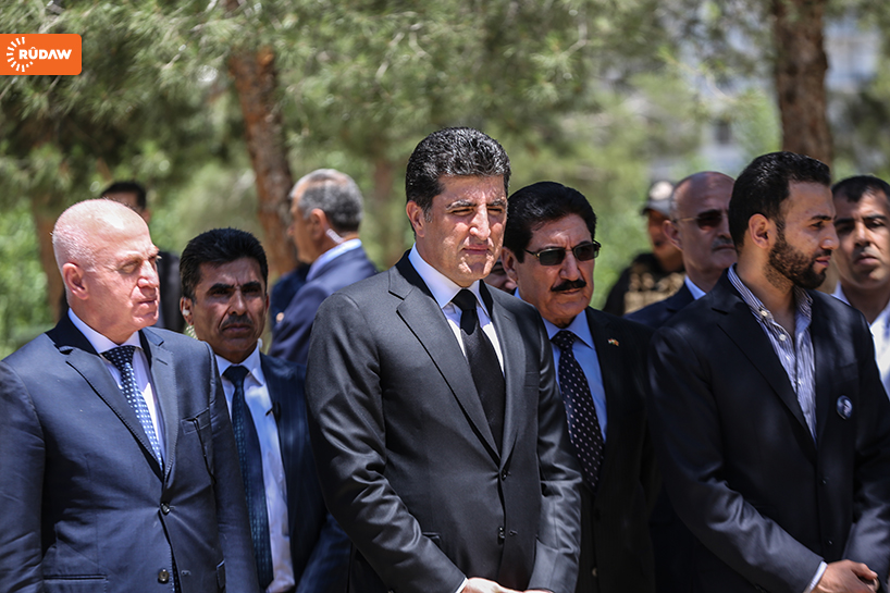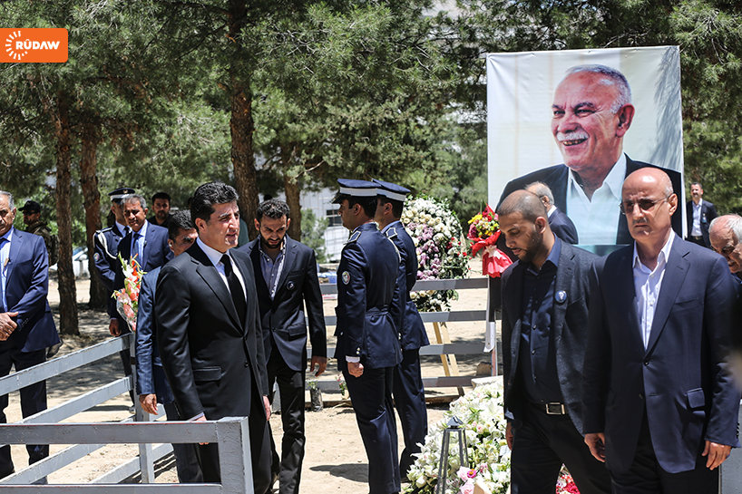 Kürdistan Demokrat Partisi’nden (KDP) üst düzey yetkililerle taziyeye giden Başbakan Barzani, Newşirwan Mustafa’nın mezarına çelenk bırakarak dua etti.