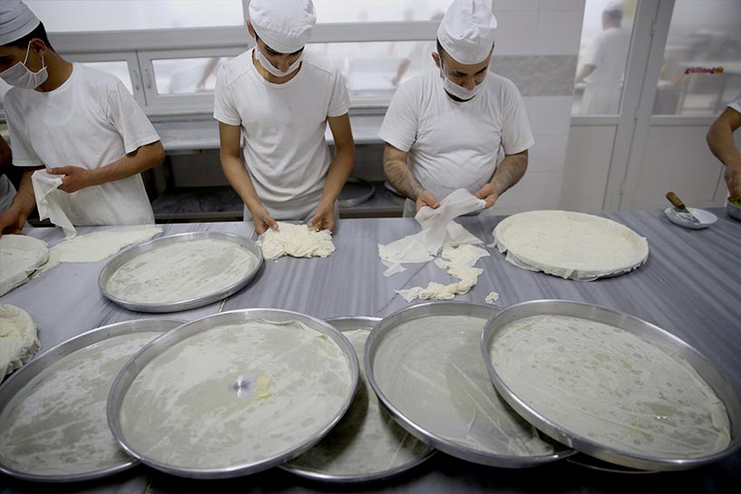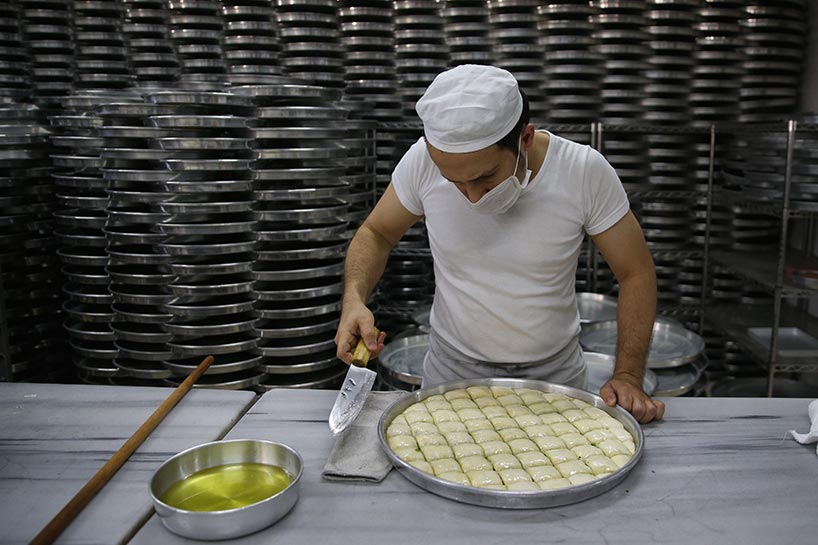 AA - Damak lezzetiyle öne çıkan kentlerin başında gelen Antep ve Urfa'da baklavacılar, Ramazan Bayramı öncesi talebi karşılayabilmek için yoğun mesai harcıyor.