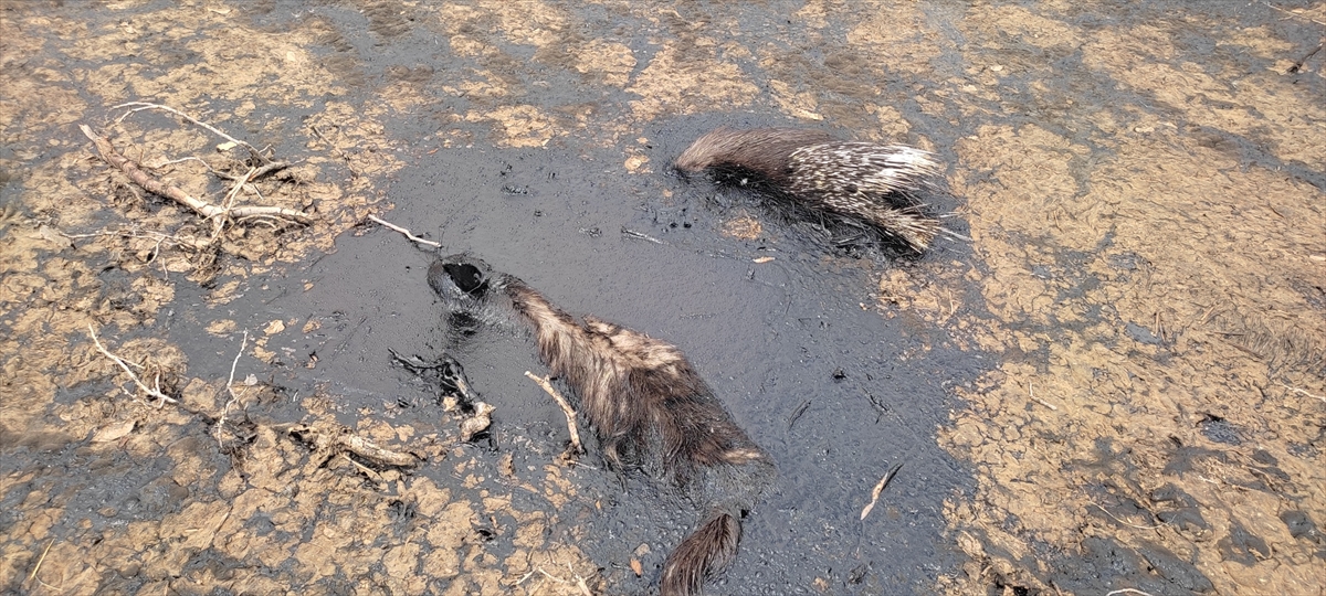 Kesiktaş (Sıne) köyü yakınlarında hayvanlarını otlatan çoban, petrol atığı olan bir bataklığa saplanmış sırtlanı fark etti.