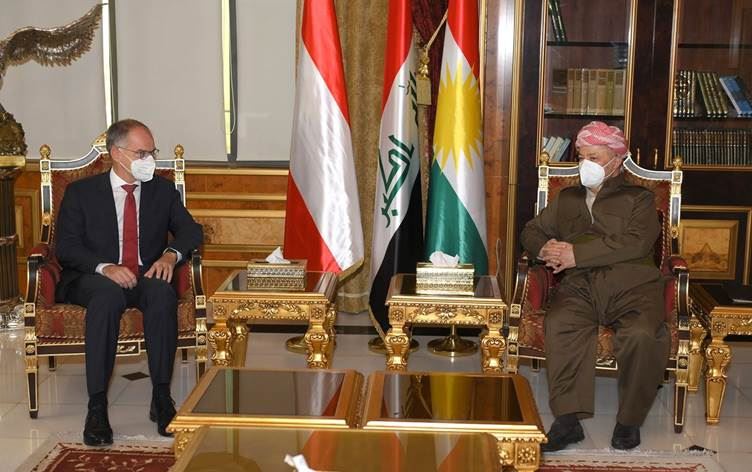 Başkent Erbil’e gerçekleştirdiği ziyaret kapsamında Avusturya’nın Amman ve Bağdat Büyükelçisi Oskar Wüstinger Başkan Mesud Barzani ile bir araya geldi.