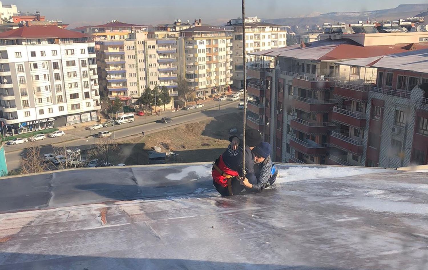 Haber Merkezi - Batman’da bina görevlisi, 9 katlı binanın çatısına çıkıp temizlik yaptığı sırada, buz tutan çatıda dengesini kaybedip kaydı. Yağmur suyu oluğuna çarparak duran görevli, itfaiye ekiplerinin 1 buçuk saatlik çalışması sonucu kurtarıldı.