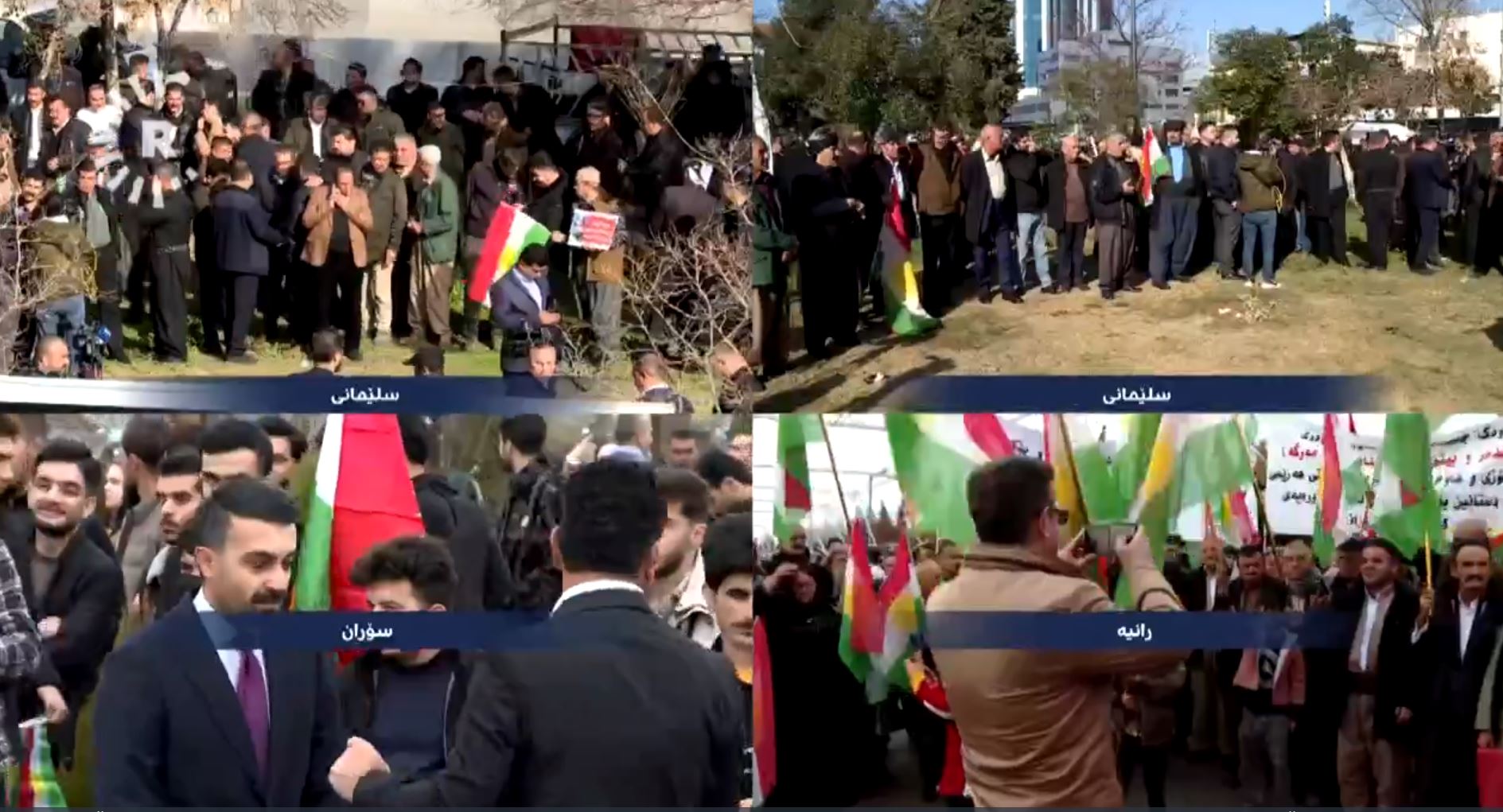 Süleymaniye kent merkezi ile Halepçe ilçesinde de bugün büyük protesto mitingleri düzenleniyor. Soran ve Ranya ilçelerindeki kitlesel gösteride dev Kürdistan bayrağı açıldı ve İran karşıtı sloganlar atıldı.
