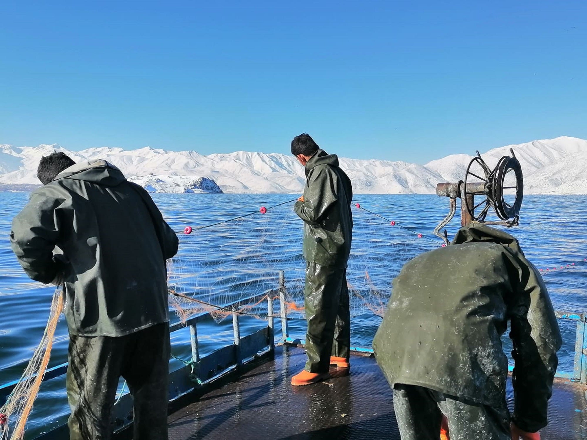 Ağlarını göle atan balıkçıların uzun bekleyişinin ardından yakalanan tonlarca balık, hem kentte satılıyor hem de diğer illere gönderiliyor.