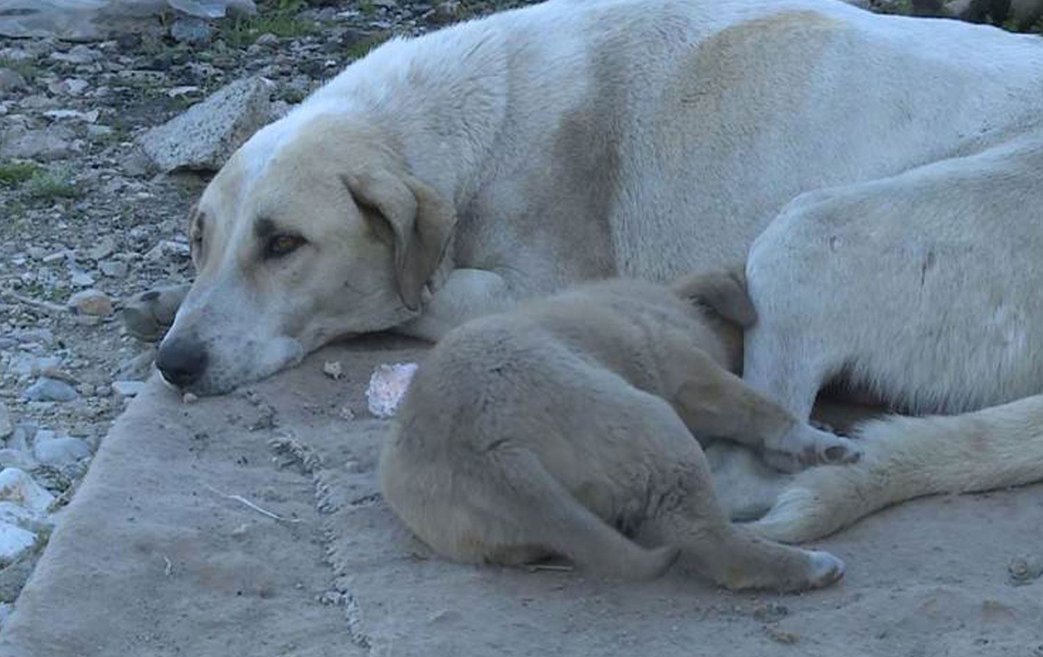 5 yavrusu öldürülen 3’ü de kayıp olan anne köpeğin geriye sadece bir yavrusu kalmış.