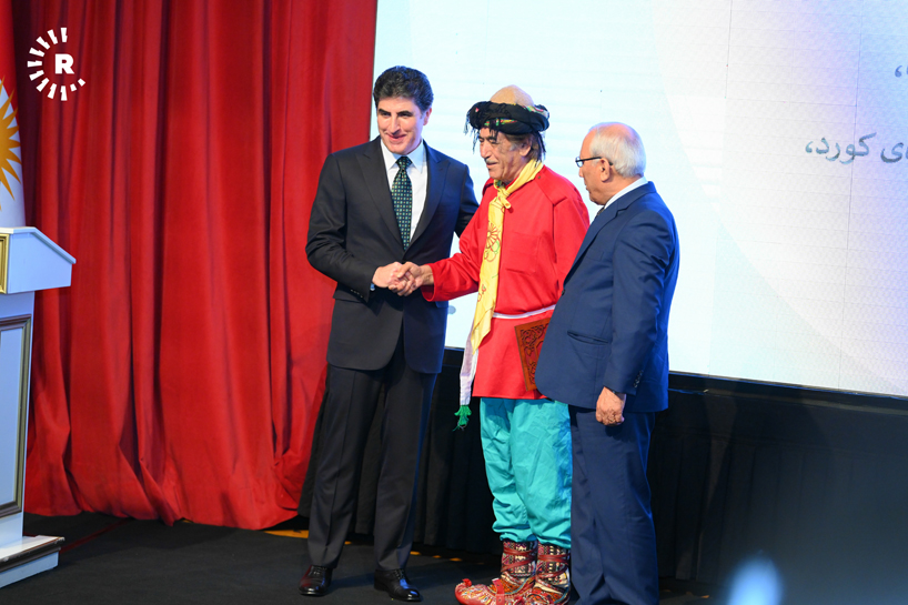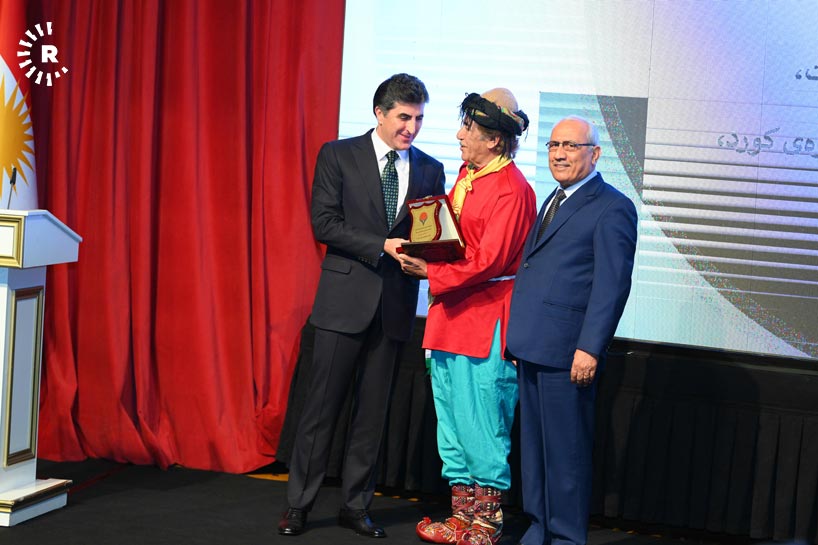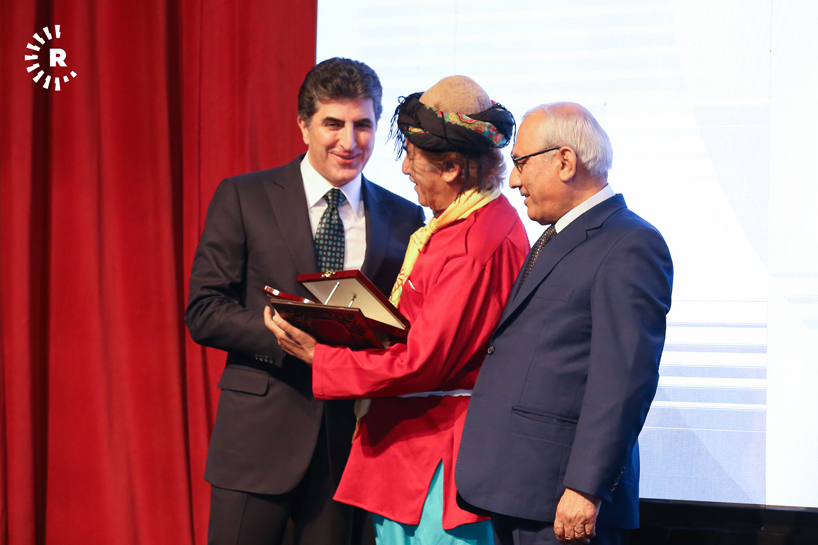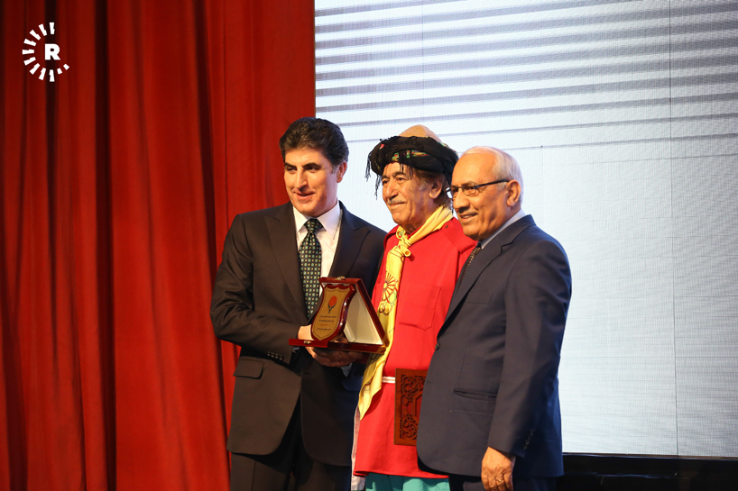 Horasanlı Kürt tarihçi 78 yaşındaki Kelimullah Tevehudi, Başbakan Barzani’nin elinden onur plaketini aldı.
