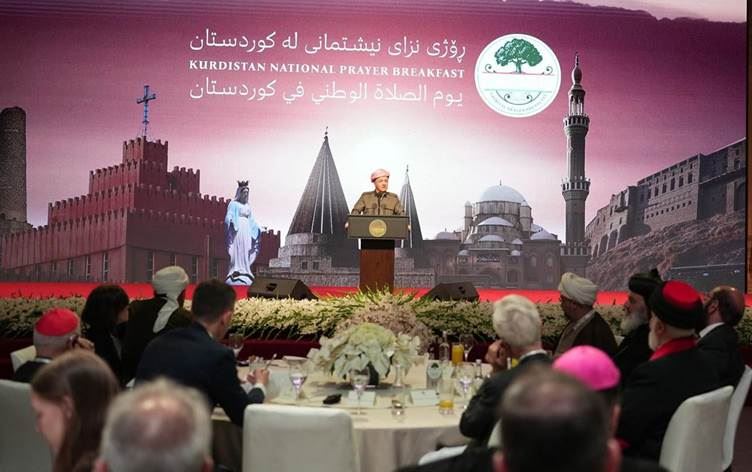 Başkan Mesud Barzani, Ulusal Dua Günü kapsamında düzenlenen törende yaptığı konuşmada "Hepinizi, değerli misafirlerimizi sıcak bir şekilde karşılıyorum. Etnik ve dini bir arada yaşamanın beşiği olan Kürdistan'a hoş geldiniz" dedi.