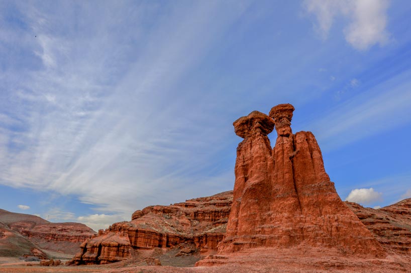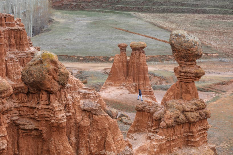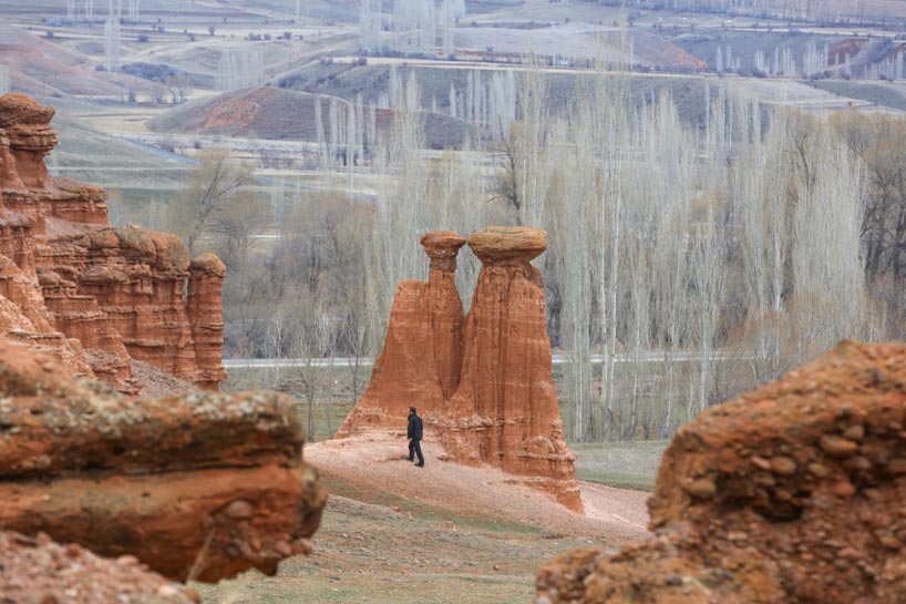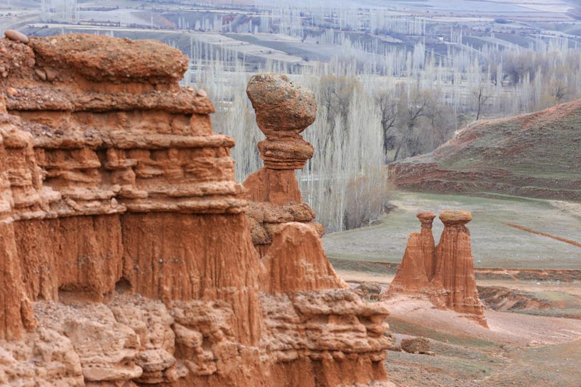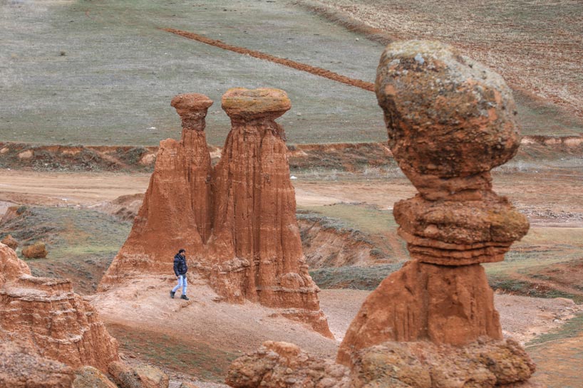 AA- Türkiye'nin peri bacaları ile ünlü Kapadokya bölgesine benzerliğiyle dikkat çeken Erzurum'un Narman ilçesindeki peri bacaları, Kırmızı rengi ve ilginç yeryüzü şekilleriyle dikkat çekiyor.