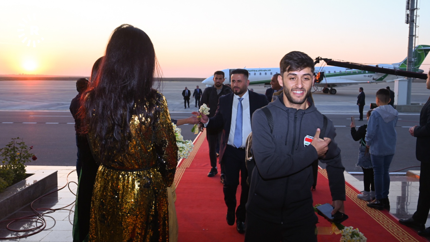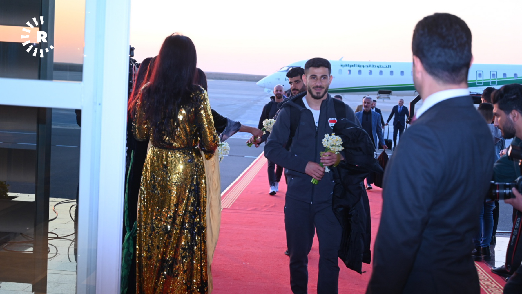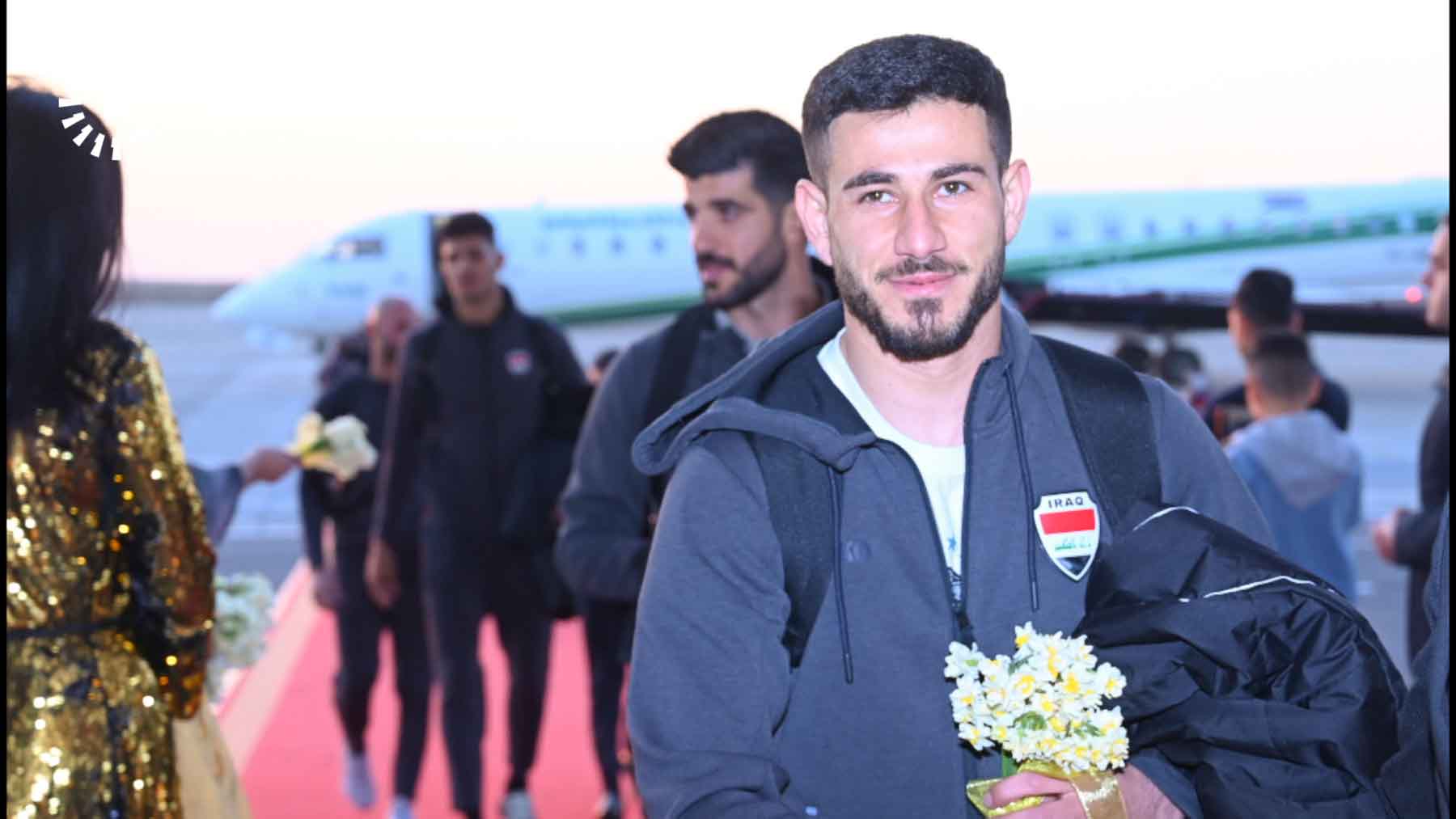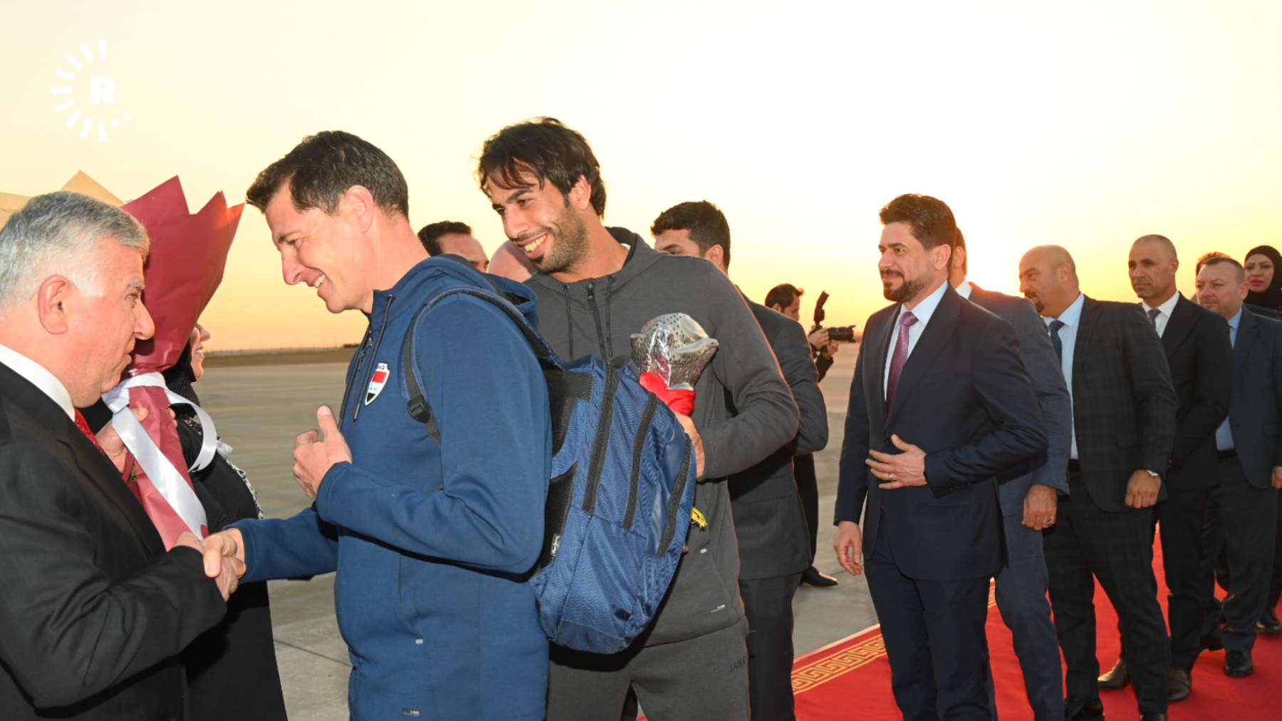 Oyuncular, Erbil Uluslararası Havalimanı'nda nergislerle karşılandı. Takıma eşlik edenler arasında Irak Futbol Federasyonu Başkanı ve Basra Valisi de bulunuyor.