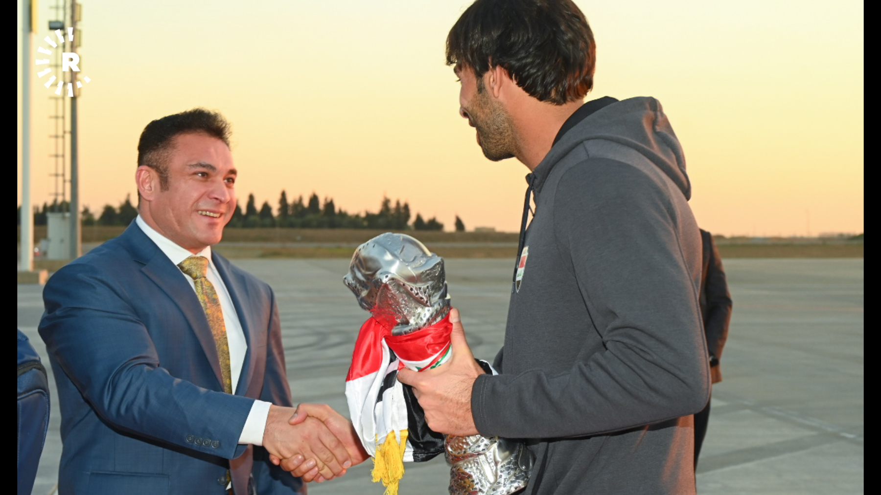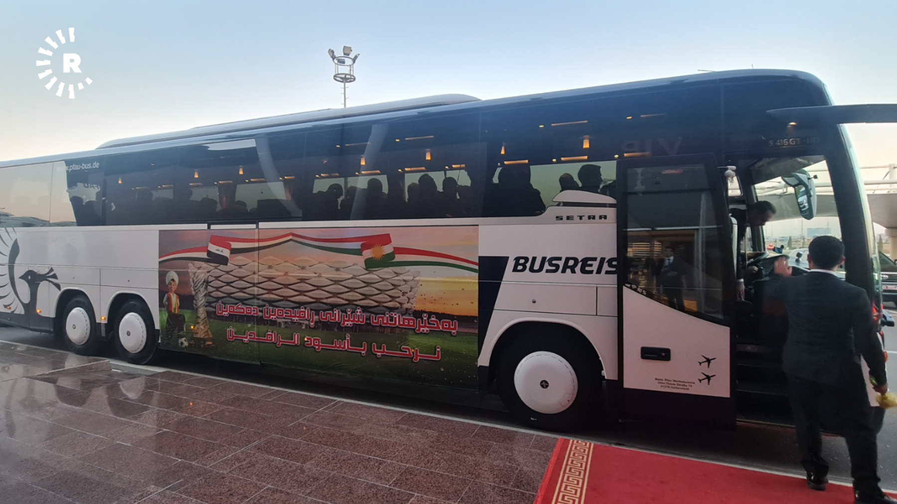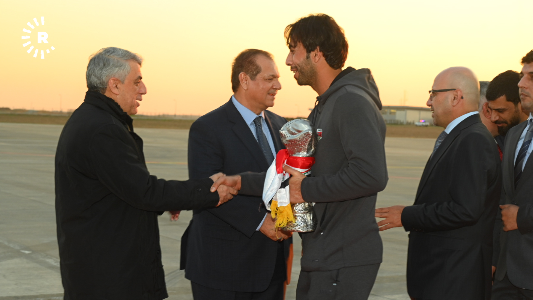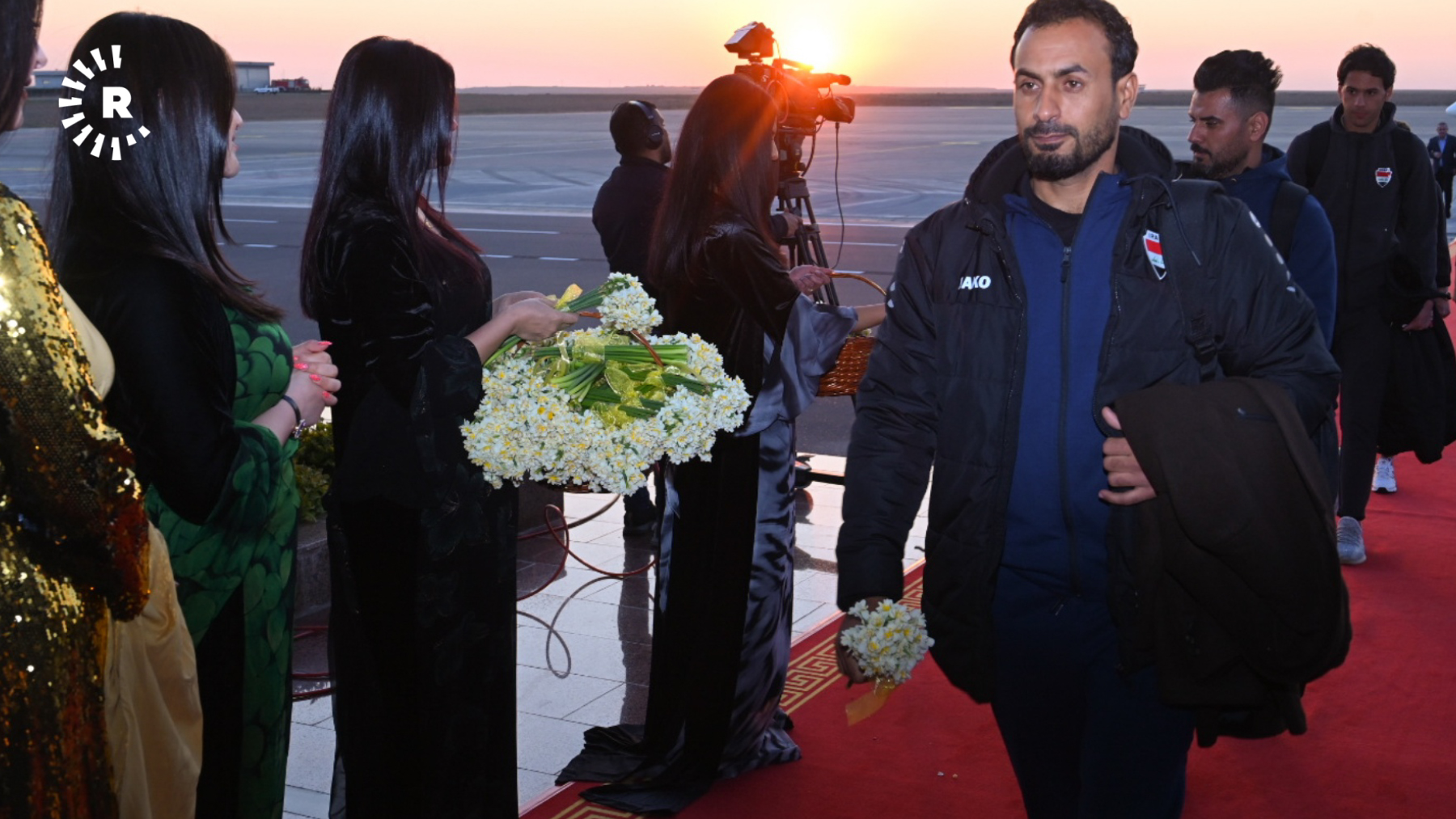 Oyuncular, Erbil Uluslararası Havalimanı'nda nergislerle karşılandı. Takıma eşlik edenler arasında Irak Futbol Federasyonu Başkanı ve Basra Valisi de bulunuyor.