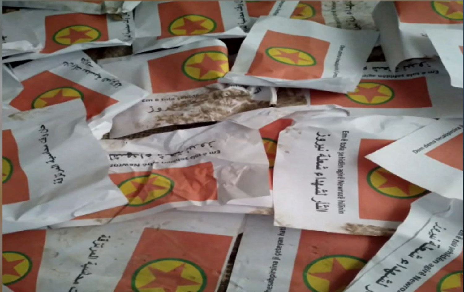 Newroz’da katledilen yakınlarının mezarlarını ziyaret etmek isteyen Cindirêsliler, yolda gösterilerde kullanılan sloganların yazılı olduğu PKK bayraklı broşürler buldu.